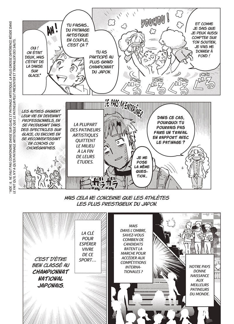 It is the story of fifth grade student Inori Yuitsuka who dreams to become a great figure skater, but since her sister injured herself in a competition, her mother doesn’t want her to even try. Then she meets Tsukasa Akeuraji, an athlete who has seen his skating dream crushed and is now considering becoming a coach. Together they will find the motivation to reach for Olympic Gold !
