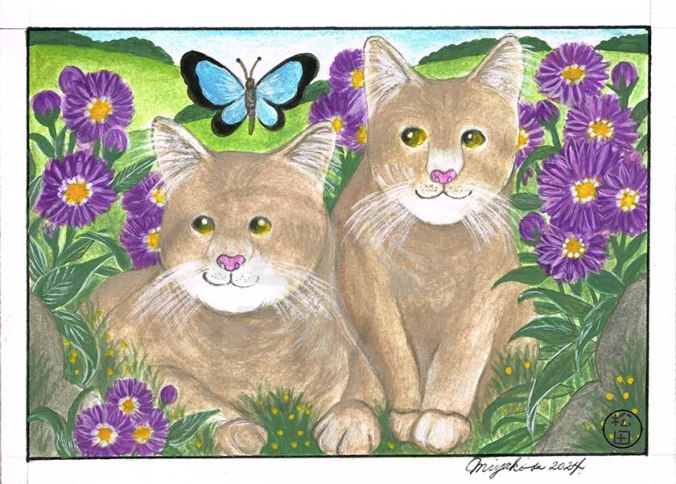 Cats, butterfly and Aster