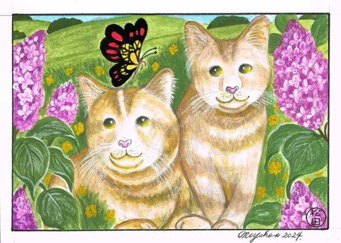 Tabbies with butterfly and Lilac