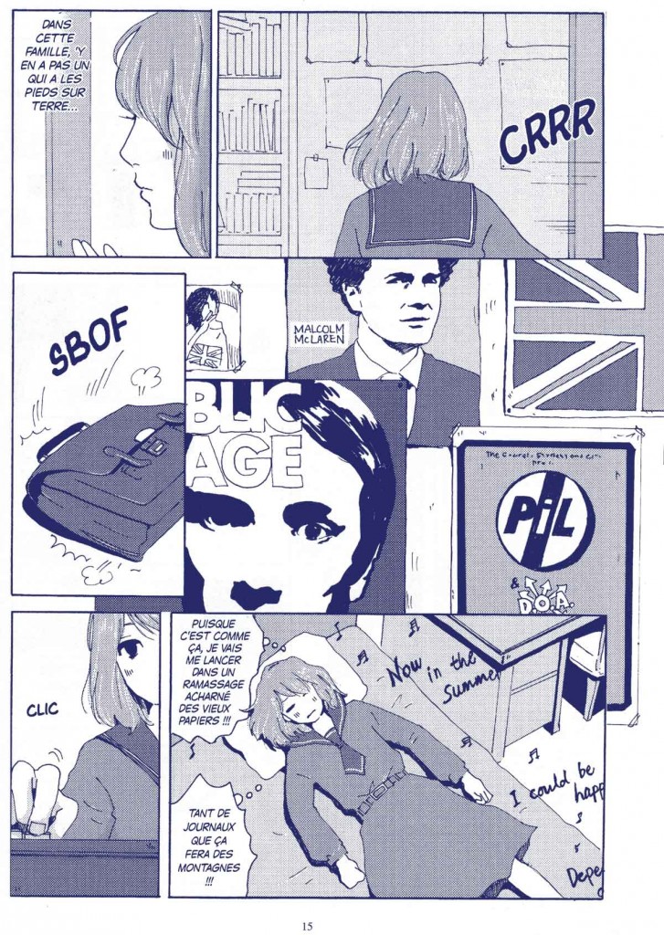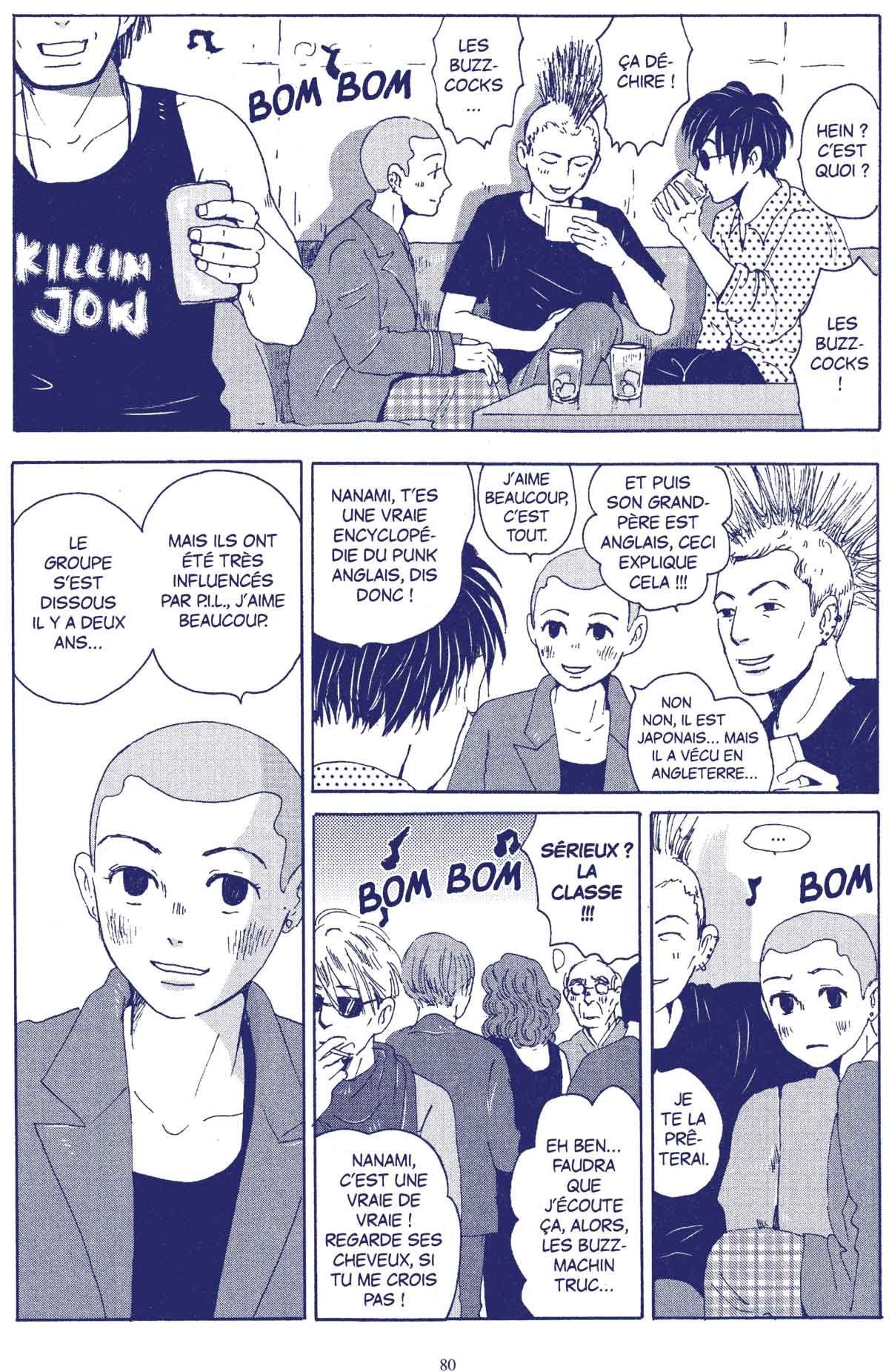 “Début des années 80, au Japon. En l’absence de sa mère, Nanami, une adolescente très énergique, vit seule dans la maison familiale avec son grand-père Tokushirô. Sa profonde affection pour ce vieil homme excentrique et original n’empêche pas les conflits. Nanami entretient ainsi une guérilla permanente avec l’inconséquence et la prodigalité de son grand-père, incapable de gérer correctement le peu d’argent dont ils disposent pour vivre et se nourrir. Tokushirô de son côté, tout en ayant conscience de certaines des angoisses de sa petite fille, ne parvient que difficilement à brider son côté jouisseur et fantasque. Heureusement, l’un et l’autre partagent un vrai goût de l’anticonformisme et une fascination pour la culture britannique : Tokushirô a autrefois vécu en Grande Bretagne et parle l’anglais, une rareté chez les Japonais, tandis que Nanami vibre pour les musiciens punks anglais qui occupent alors le devant de la scène rock internationale, à l’image de son groupe fétiche P.I.L.…” [ Texte du site de l’éditeur ]