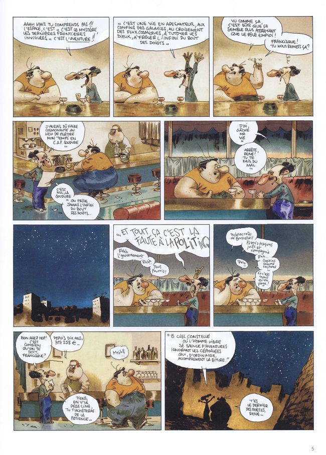 Et quoi de plus amusant, de plus délirant et de plus émouvant, pour commencer, que de découvrir du Valérian vu par Larcenet ? Il ne s’agit bien sûr ni d’un pastiche, ni d’une suite respectueuse. C’est à la fois du vrai space-opéra méditant sur les espaces infinis, et du vrai Larcenet rigolant du tout, que va dévoiler L’Armure du Jakolass.