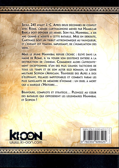 Mais le jeune Hannibal refuse l’échec : élevé dans la haine de Rome, il va vouer son existence entière à la destruction de l’ennemi. Commence alors l’affrontement exceptionnel d’un des plus grands tacticiens de tous les temps et de son alter ego romain, le génie militaire Scipion l’Africain. Traversée des Alpes à dos d’éléphant, pillages impitoyables et combats parmi les plus sanglants de mémoire d’homme : un duel à mort qui a marqué l’Histoire…