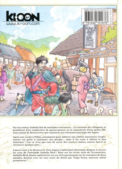 Isabella Bird, femme exploratrice T02 par Taiga SASSA. Paris: Ki-oon (Coll. Kizuna), décembre 2017. 224 pg, , 13 x 18 cm, 7,90 € / $14.95 Can., ISBN 979-10-327-0167-6. Pour lectorat jeune (7+).