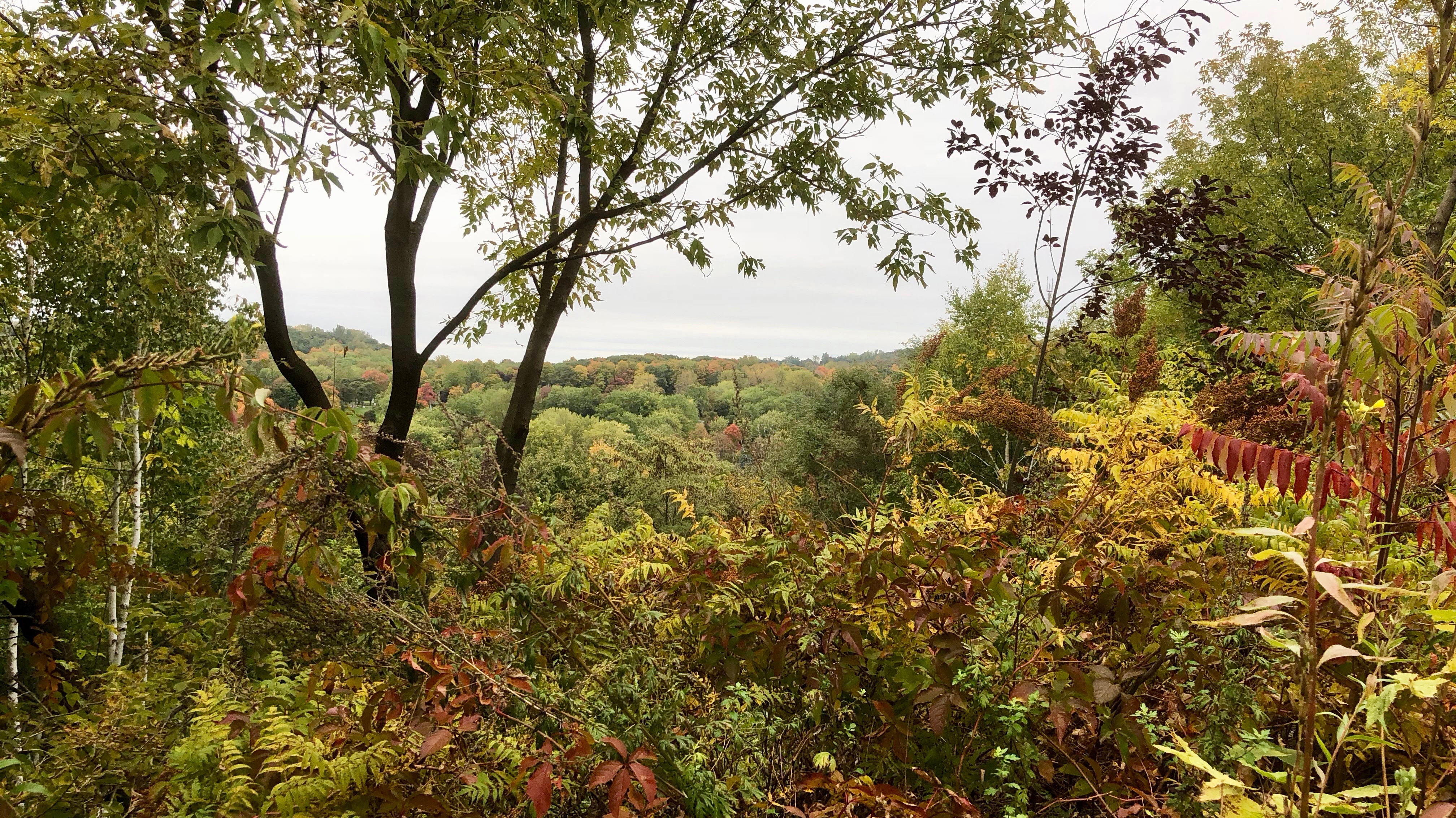 For our first visit, on October 8th, we went to the Summit Wood area, up the Belveder Rd and behind the Saint-Joseph Oratory. The colours of the foliage was disappointing but it gave us the opportunity to view the city from the Summit Circle Look Out and to admire the eccentric houses of this area of Westmount.