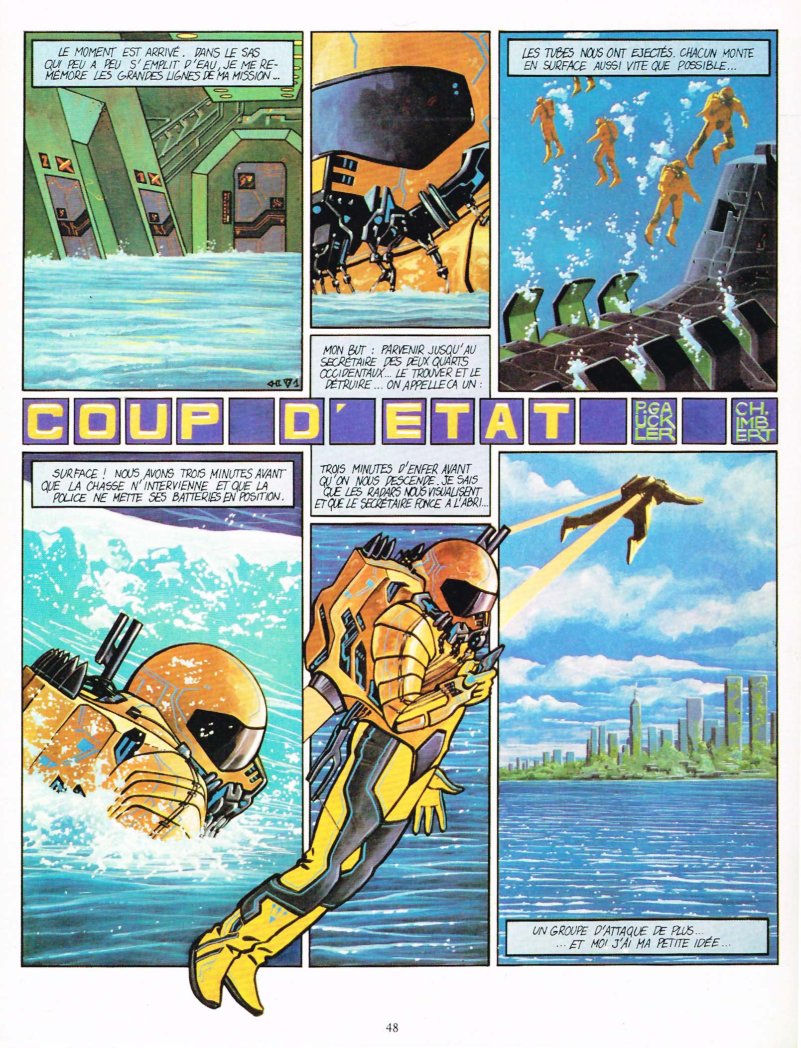 “Coup d’État” (MH 78, août ’82, p. 48, 8 pages) présente encore le même univers et les mêmes défauts mais le récit est déjà un peu plus fluide et plus dynamique.