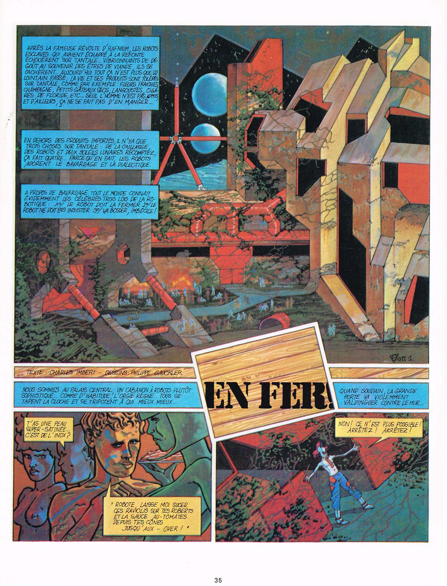 “Enfer” (MH 79bis, Spécial Robots, p. 35, 8 pages) est une rigolote histoire de robots et de foi (indépendante des autres épisodes). Un récit illustré, beau, mais ce n’est toujours pas de la BD au sens propre.