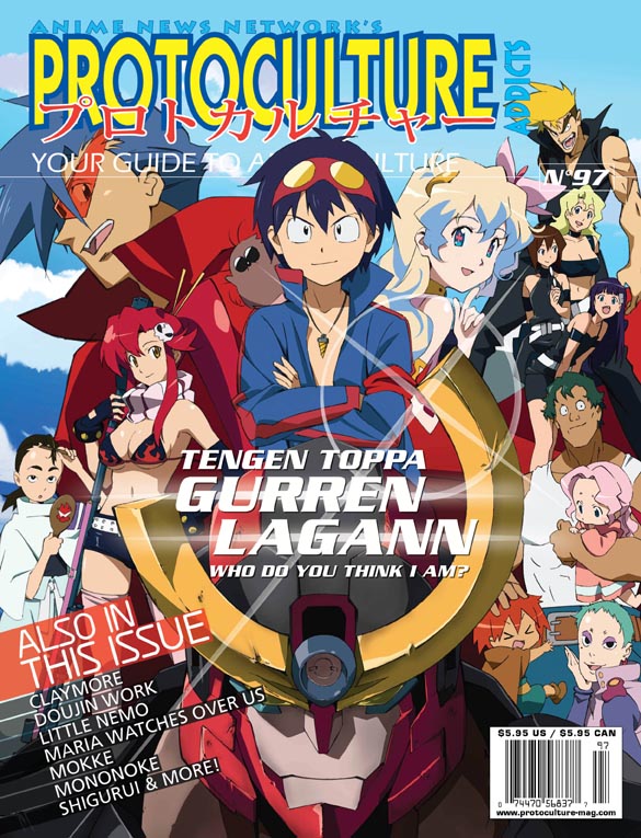 Unfortunately, after publishing this anniversary tribute, only three more issues of the magazine were published: #95 (March-April 2008, covering mostly Appleseed: Ex Machina, the new Evangelion movies, Emma Act 2, Gurren-Lagann, Seirei no Moribito, Toward The Terra), #96 (May-June 2008, covering mostly Blood+, Genius Party, xxxHolic, Angel Heart, Dennou Coil, Moyashimon, Ookiku Furikabutte, Rec) and #97 (July-August 2008, covering mostly Gurren Lagann, Maria-sama ga Miteru, Kujibiki Unbalance, Aria, Black Cat, Claymore, Kashimashi, Mokke, MoNoNoKe, Shigurui). My favourite issue for the ANN era (and ever) is without contest #96 because I am very proud of the layout and of the quality of the articles that Miyako Matsuda and I wrote (mostly Dennou Coil, Moyashimon, Ookiku Furikabutte). I am also quite fond of #97, because it is the last one and I always did my best to constantly improve the magazine with each new issue.