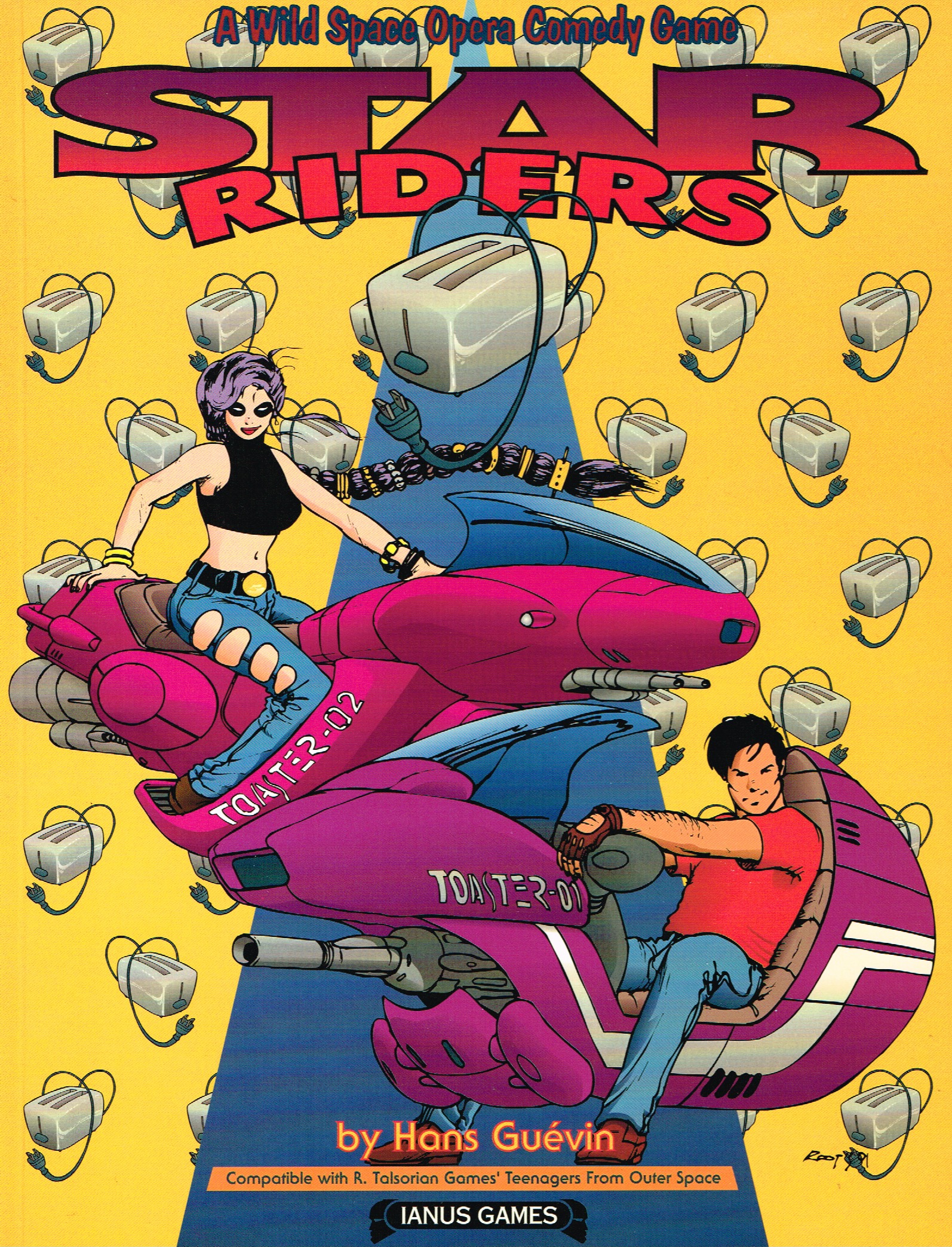 In four years, the same amount of time as the previous era, we released twenty-three issues of the magazine, as well as several other anime-related publications: Anime Shower Special #2-3 (Dec. ’91, Nov. ’92), Mecha Press #1-17 (Jan. ’92 – Apr. 95), Cybersuit Arkadyne #1-3 (Mar. ’92 – Jun. ’92, a comic book by Tim Eldred & Jonathan Jarrard), the Project A-ko RPG (Mar. ‘95) and we also produced three Macross II sourcebooks for Palladium (Mar., Jul. & Dec. ‘94). The gaming aspect was taking more and more of our production time. On top of our anime-related titles, we published dozens of alternate-reality adventure books for R. Talsorian games, Cyberpunk (18 titles), Mekton (2 titles) and Teenagers from Outer-Space (1 title). We also created our own games: Heavy Gear (which spawned a couple of video games and an animation) and Jovian Chronicles. The production team was getting too small to handle both the gaming book line and the anime magazines, so at the end of 1995, we decided to split Ianus Publications in two: Pierre Ouellette kept the gaming part (which became Dream Pod 9) and I kept the anime-related stuff (under the new name of Protoculture).