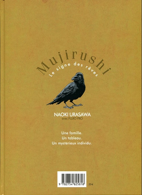 Mujirushi: Le Signe des rêves 1, par Naoki Urasawa. Paris: Futuropolis / Louvre Éditions, août 2018. 144 pages, 19.5 x 26.5 cm, 20,00 €/ $39.95 Can. ISBN 978-2-7548-2577-1. Pour lectorat adolescent (14+).