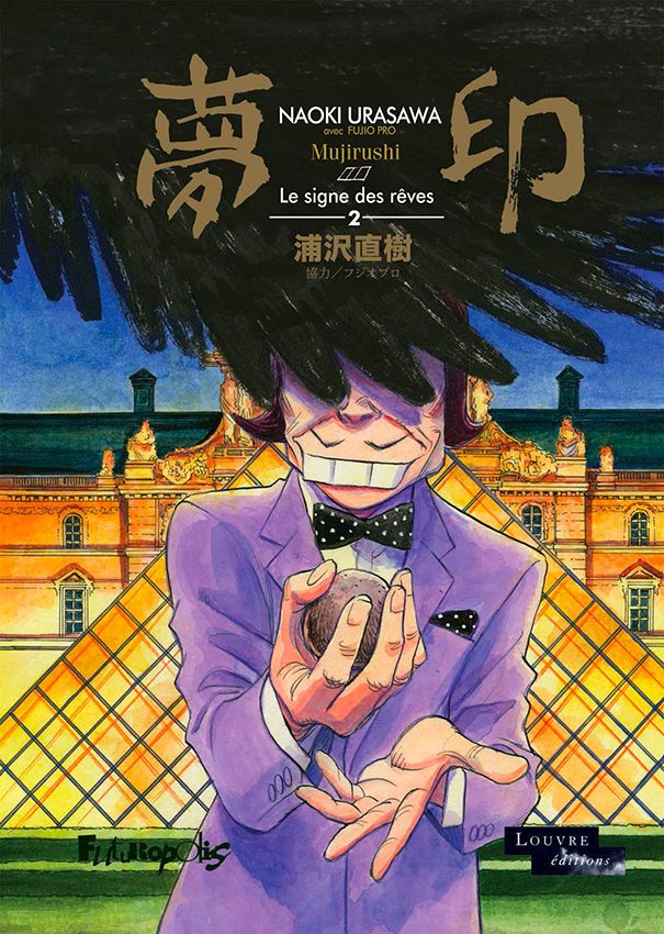 Mujirushi: Le Signe des rêves 2, par Naoki Urasawa. Paris: Futuropolis / Louvre Éditions, octobre 2018. 136 pages, 19.5 x 26.5 cm, 20,00 €/ $39.95 Can. ISBN 978-2-7548-2581-8. Sens de lecture original (de droite à gauche). Pour lectorat adolescent (14+).
