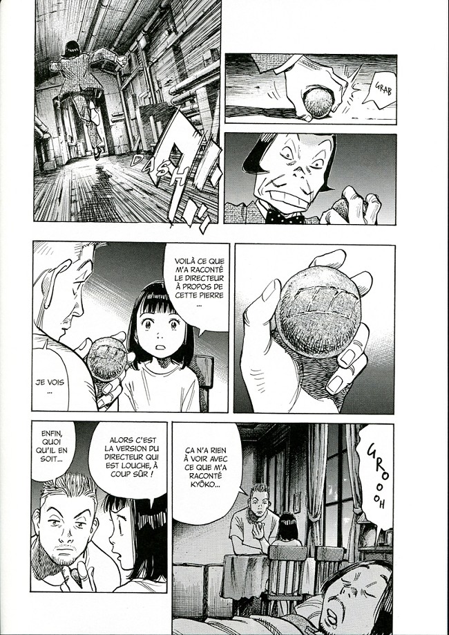Le dessin d’Urasawa, sans être désagréable, est tout de même assez ordinaire. Par contre son récit — souvent empreint de fantastique — est toujours captivant. Si ses personnages sont peu crédible (l’éternel “looser” pathétique et l’amateur d’art manipulateur aux dents géantes), sa description des salles du Louvre est plutôt charmante. Dans l’ensemble c’est un très bon manga mais la première partie se termine abruptement sur un suspense. La suite au deuxième volume!
