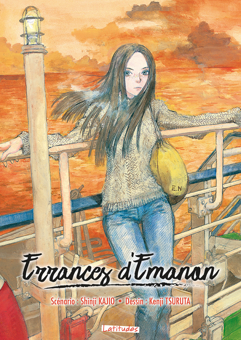 Errances d’Emanon, par Shinji KAJIO (scénario) et Kenji TSURUTA (dessin). Paris: Ki-oon (Coll. Latitudes), septembre 2018. 208 pages (64 en couleurs), 17 x 24 cm, 15,00 € / $28.95 Can. ISBN 979-10-327-0315-1. Pour un lectorat adolescent (16 ans et plus; contiens de la nudité).