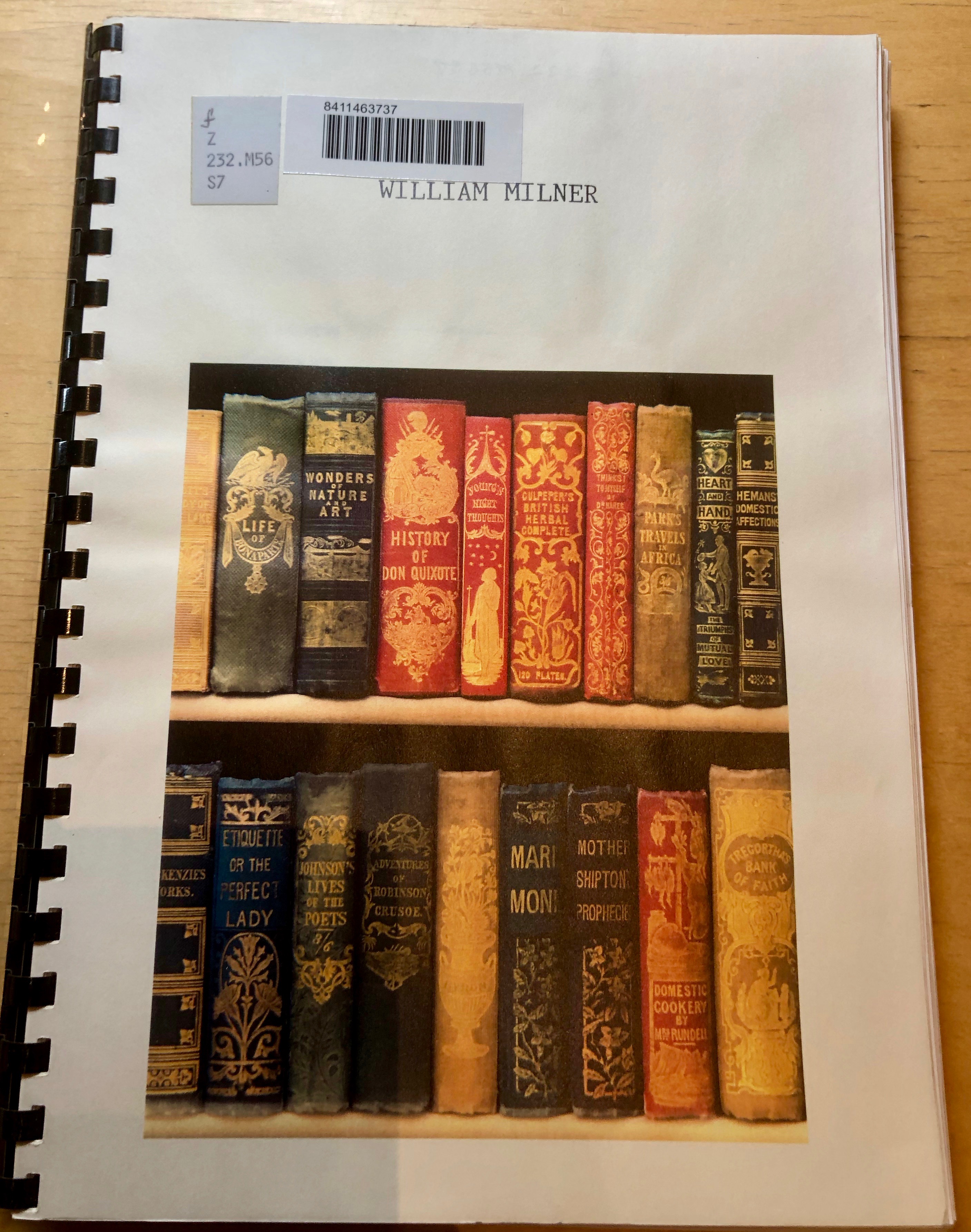 I was not able to acquire more precise information on my book. However, it was not a complete waste of time since it has allowed me to learn more about the printing industry in nineteen century England. It seems that William Milner was a pioneer of cheap literature and remains an unsung hero of the poor Englishmen as he provided them with affordable literary classics (selling for as little as a shilling or even a sixpence) that would have without any doubts further their education and culture. Several other publishers, like William Nicholson, followed his example.