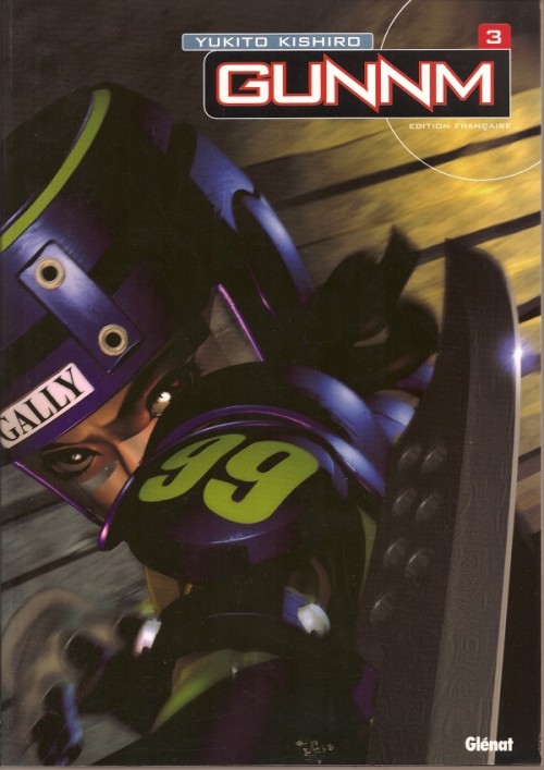 Gunnm, t. 3 par Yukito KISHIRO. Paris: Glénat, janvier 2001. 368 planches, N&B, 18 x 25.5 cm, ISBN 2-7234-3477-X. Sens de lecture occidental. Pour un lectorat adolescent (16+). stars-3-0