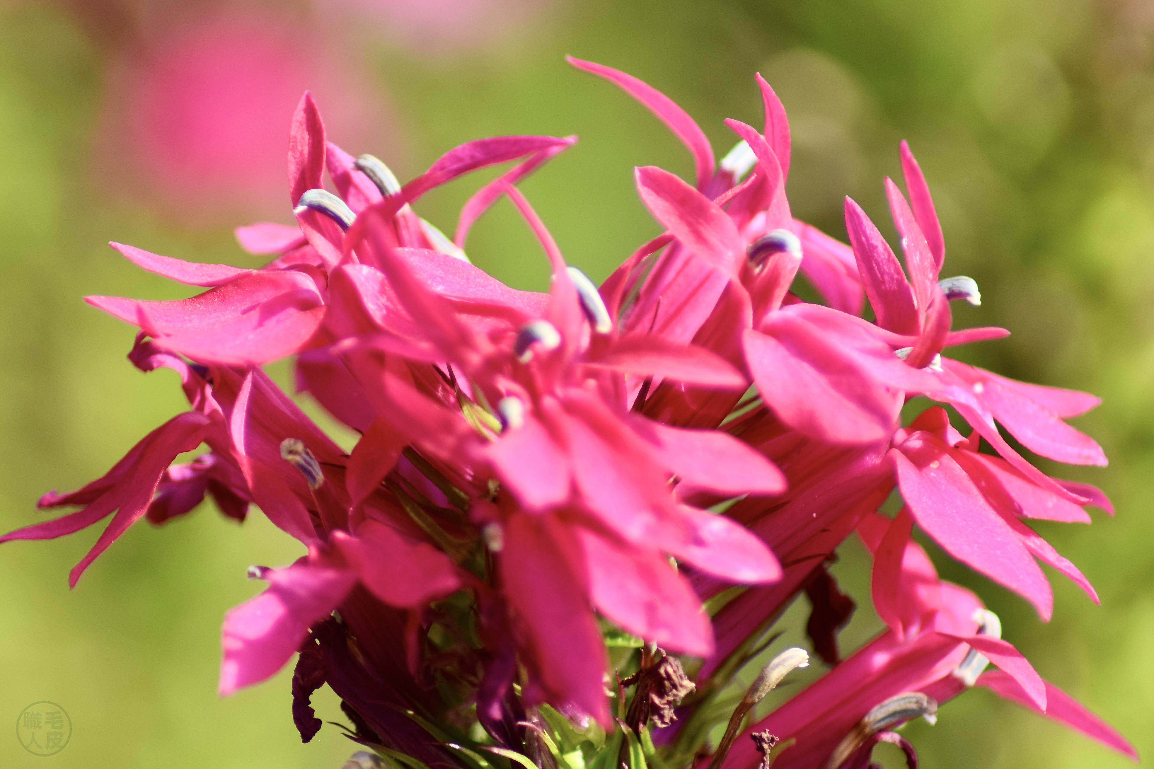 La Lobelia cardinalis est une espèce de plante vivace à fleurs de l’ordre des Asterales, de la famille des Campanulaceae, et du genre des Lobelia. Elle est apparentée à la grande lobélie (Lobelia siphilitica) et au tabac indien (Lobelia inflata). Les Zuni l’utilisaient contre les rhumatismes et l’inflammation, alors que les Pentagouets s’en servaient comme un substitut de tabac. Elle contient certain alcaloïdes, dont la lobelamine et la lobeline, et est donc potentiellement toxique si ingérée en grande quantité. Il existe plus de trois-cent espèces de lobelia. Il s’agit ici d’une variété hybride (développée par Thurman Maness de Pittsboro, NC) et du cultivar “Monet Moment” dont les fleurs sont particulièrement appréciées des papillons et des colibris. (Sources: Wikipedia et divers sites horticoles) [ Translate ]