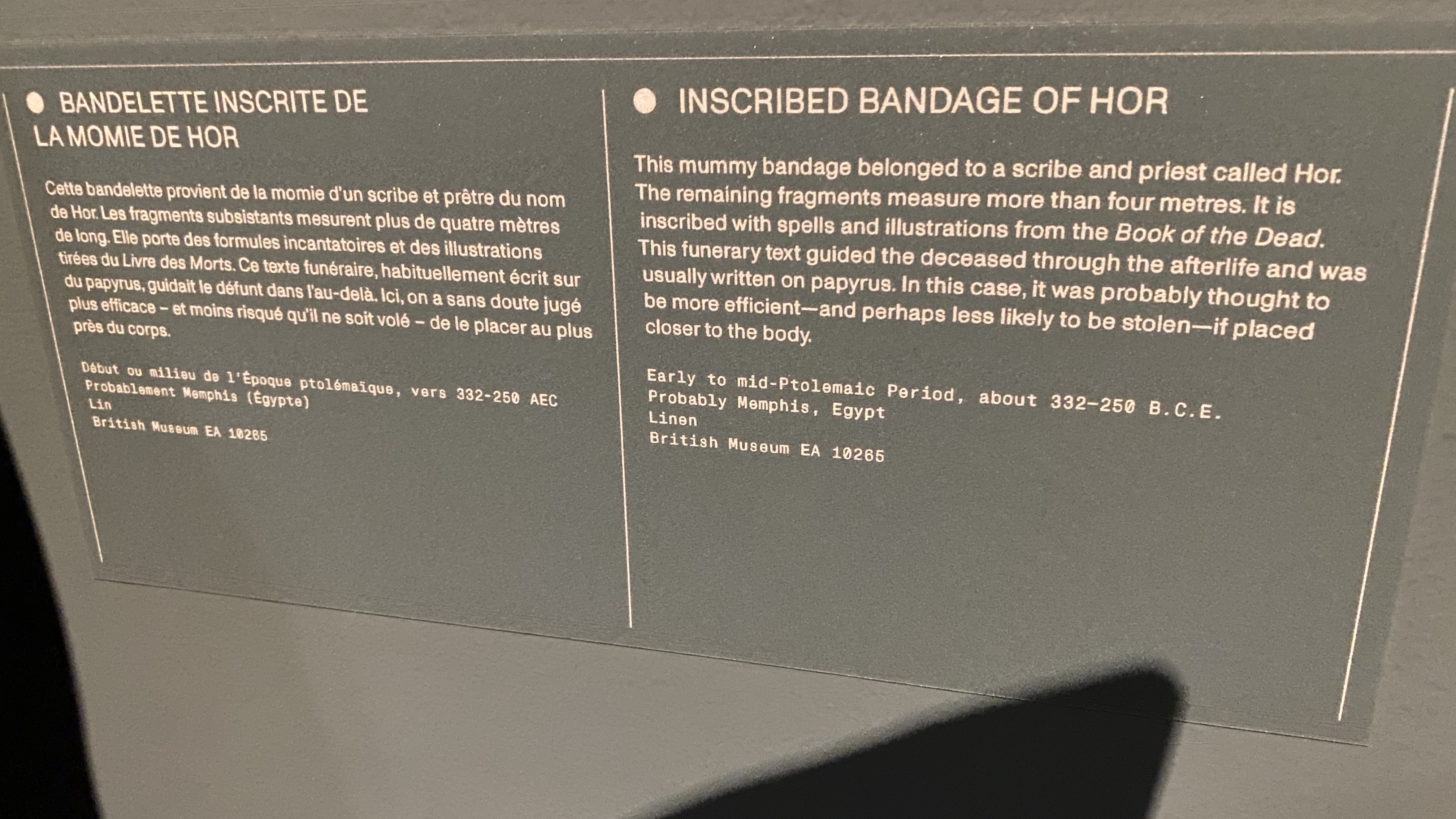 Cette photographie été prise lors d’une visite de l’exposition “Momies Égyptiennes” au Musée des Beaux Arts de Montréal le 2 janvier 2020. (Artefact du British Museum EA 10265, ©The Trustees of the British Museum).