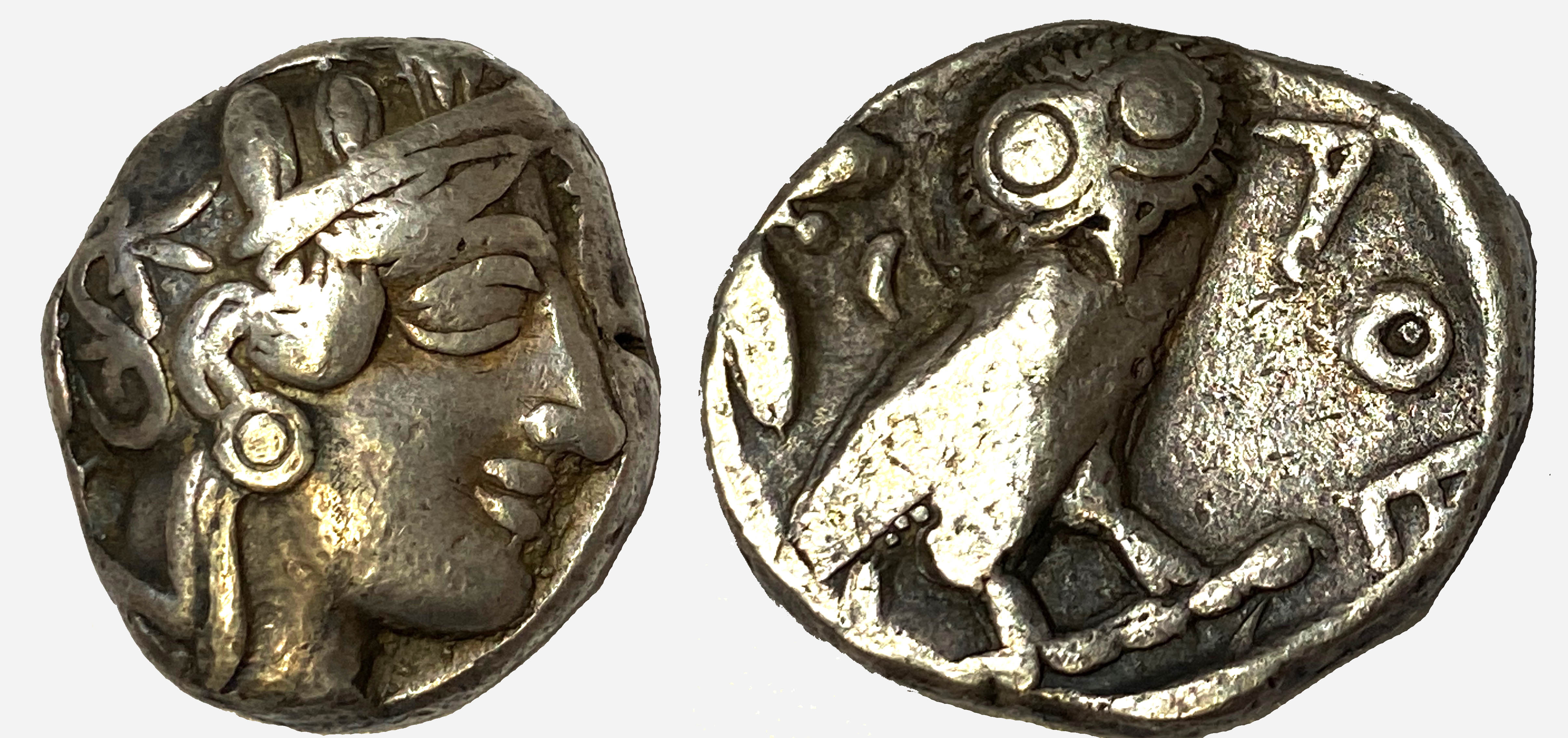 Last week I started introducing to you my collection of ancient coins. Here I continue with another fine example: the Athenian Tetradrachm also known as the “Athenian owl”.