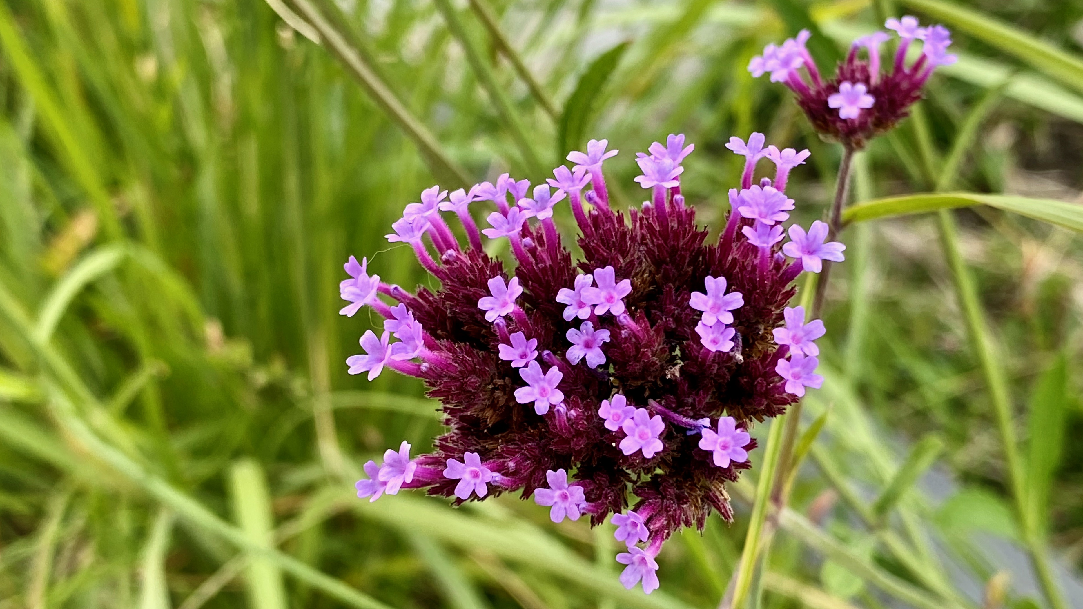 La verveine de Buenos-Aires (purpletop vervain, clustertop vervain, ou Argentinian vervain en anglais) est une espèce de plante herbacée vivace de l’ordre des Lamiales, de la famille des Verbenaceae, et du genre Verbena (qui inclue plus d’une centaines d’espèce dont la verveine officinale qui sert à faire des tisanes). Elle est caractérisée par ses minuscules fleurs (6 à 7 mm) de couleur mauve, disposées en corymbes. C’est une plante ornementale qui tolère bien la sècheresse et attire les pollinisateurs (papillons, abeilles et autres insectes bénéfiques). Originaire d’Amérique du Sud, elle est considérée comme une mauvaise herbe ou même une plante envahissante dans certains états mais est a été naturalisée dans d’autres…