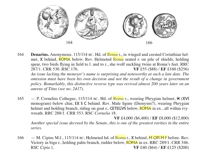 En plus des même références citées pour la pièce de M CIPI, j’ai aussi consulté les liens suivants: VCoins, VCoins, National Museum of Scotland, Catawiki, Wildwinds, ACsearch, coinArchive, numista, Shanna Schmidt numismatics, Les Dioscures, Ancient coins forum — juste pour n’en citer que quelques uns.