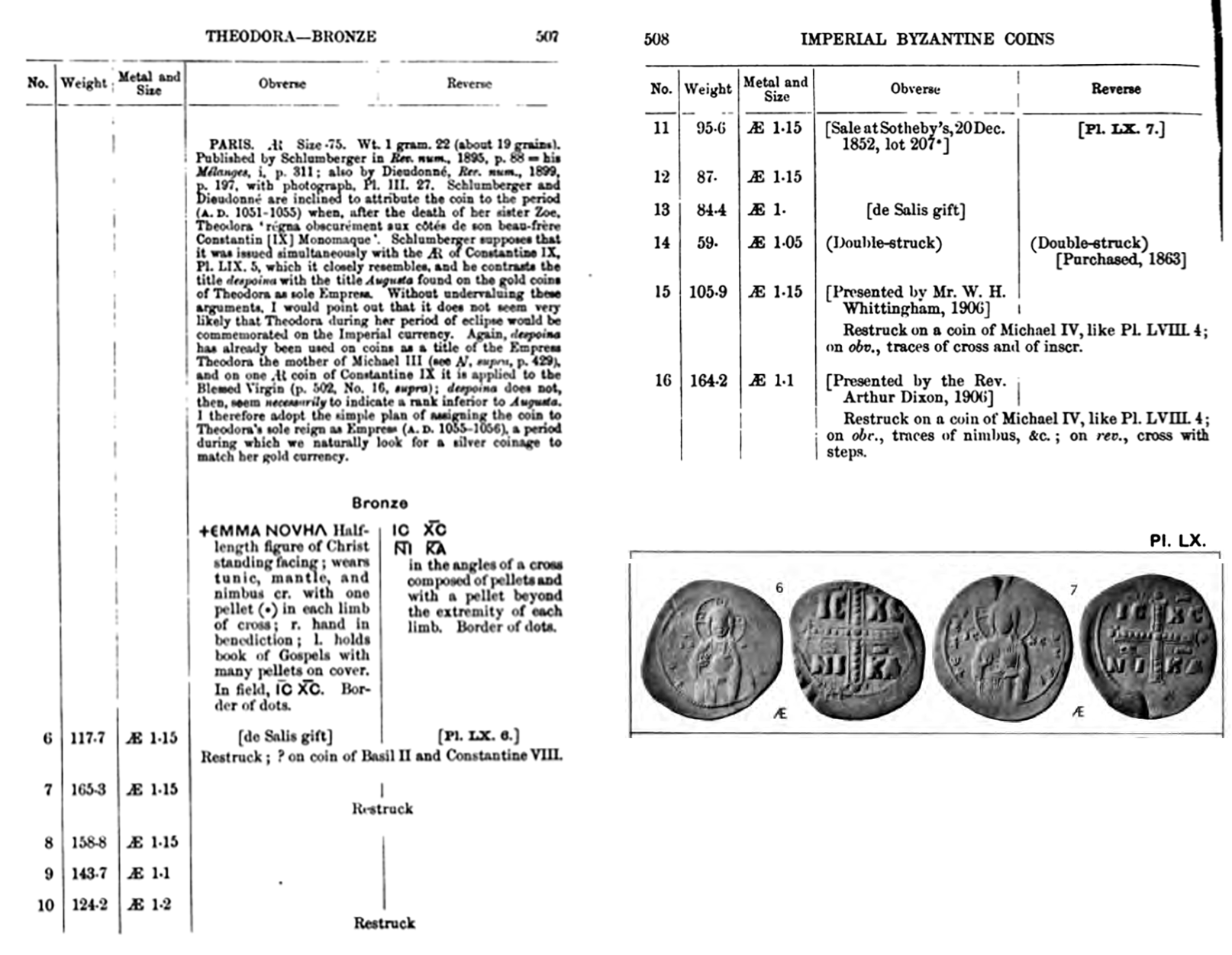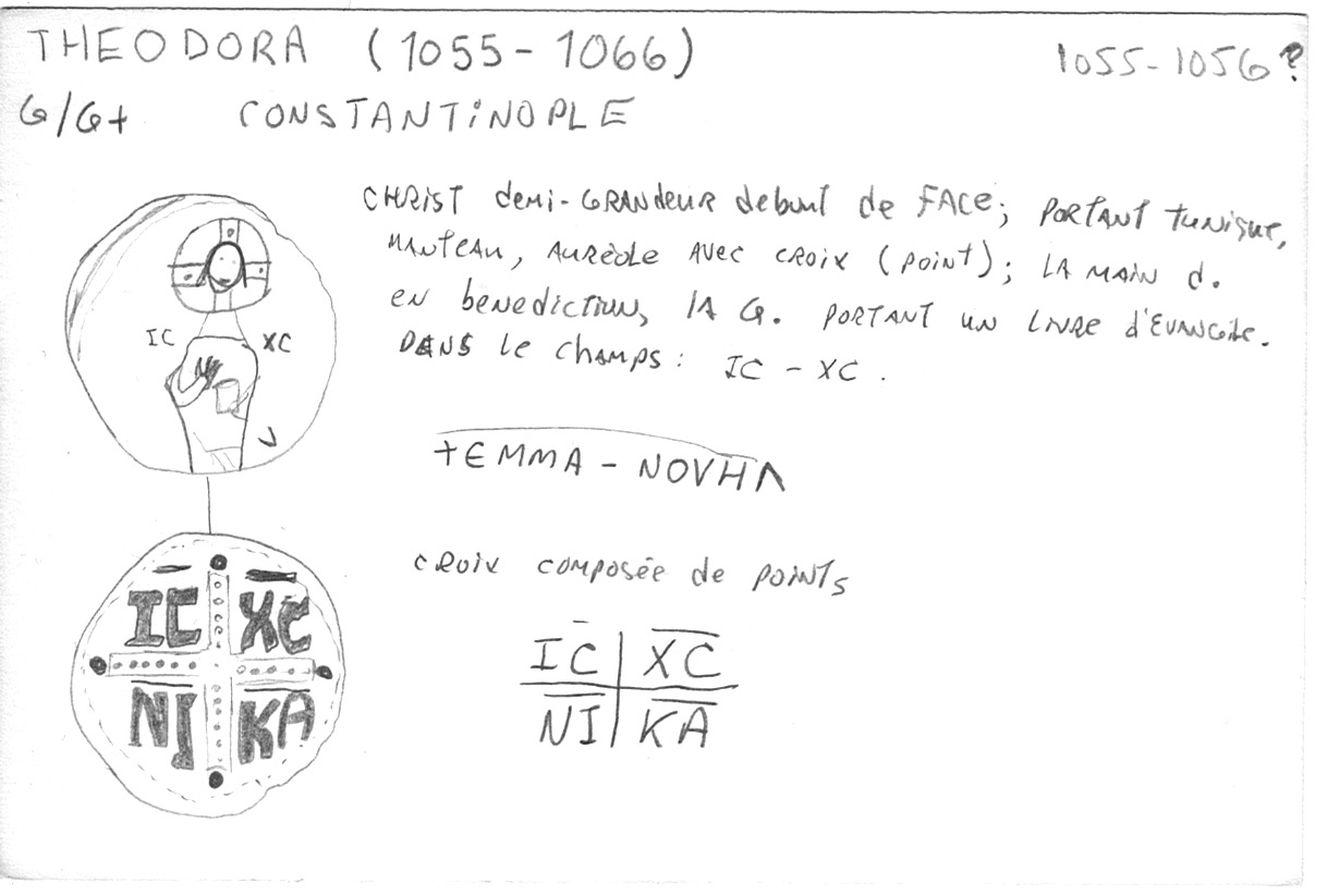 Cet antoninianus dans un état passable (G/Fair, Ae argenturé, 19 mm, 1.961 g, payé $US 15.00 le 1985/04/14, caractérisée par une couleur grisâtre et un aspect rugueux) nous offre sur l’avers un buste de Salonina, drapé et diadémé à droite, reposant sur un croissant, avec l’inscription SALONINA AVG[VSTA]. Le revers nous présente une Vénus debout à gauche, tenant un casque (ou une pomme?) dans la main droite, un long sceptre dans la main gauche et avec un bouclier à ses pieds. L’inscription est VENVS VICTRIX (“Vénus victorieuse”). Aucune marque d’officine (comme la lettre “H” ou les chiffres “IV” ou ”VI”) ne peut être distingué dans le champs droit (le RIC indique bien une variante sans marque). Le type du revers fait référence à la légende du jugement de Pâris et de la fameuse “pomme de la discorde” et est sans doute une allusion à la beauté de Salonina. Il existe plusieurs variantes de cette pièce frappée à Rome et rien ne permet de la dater précisément, mais le RIC l’indique comme une pièce frappée sous le règne seul de Gallienus (c. 260-268).