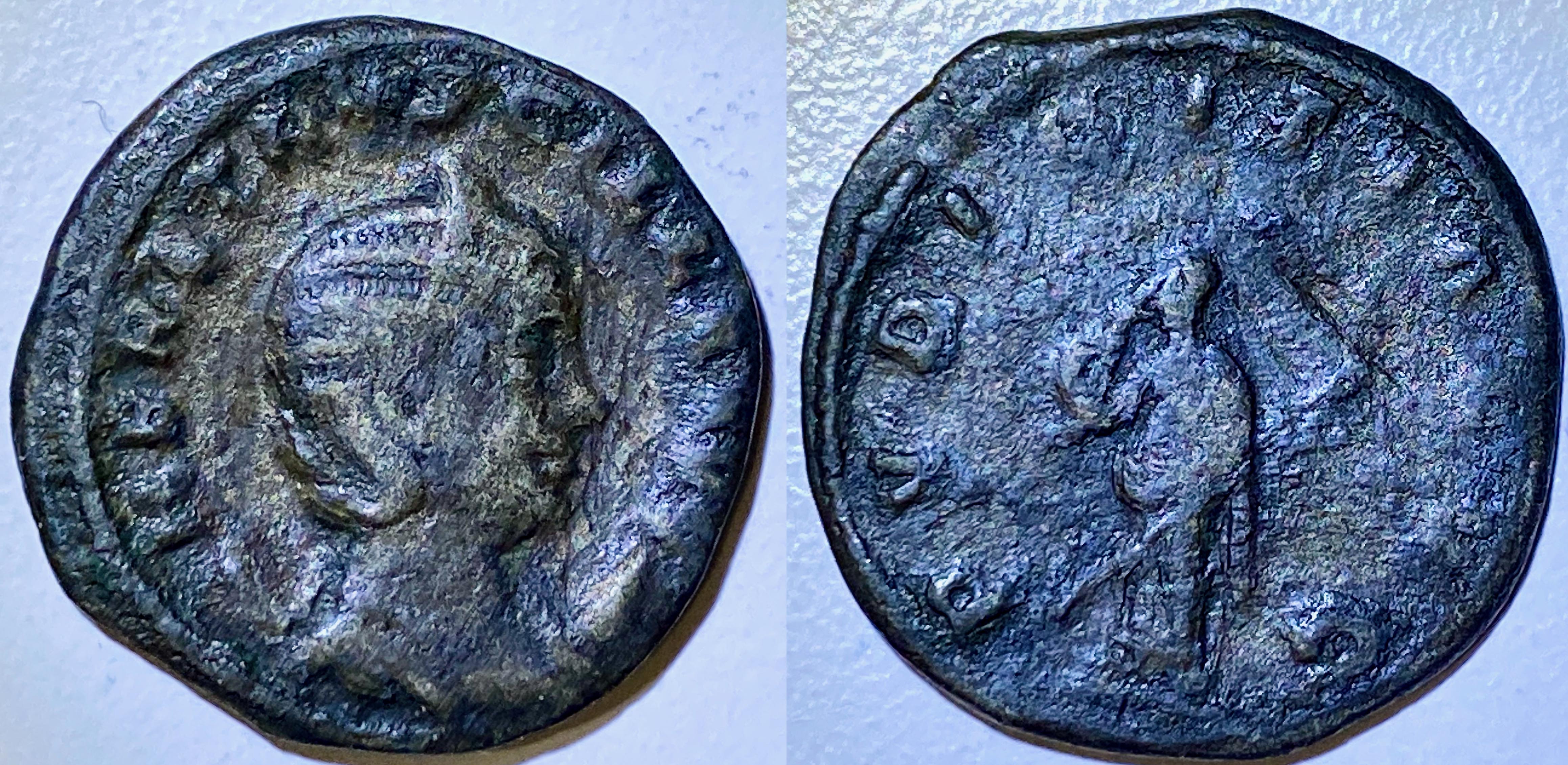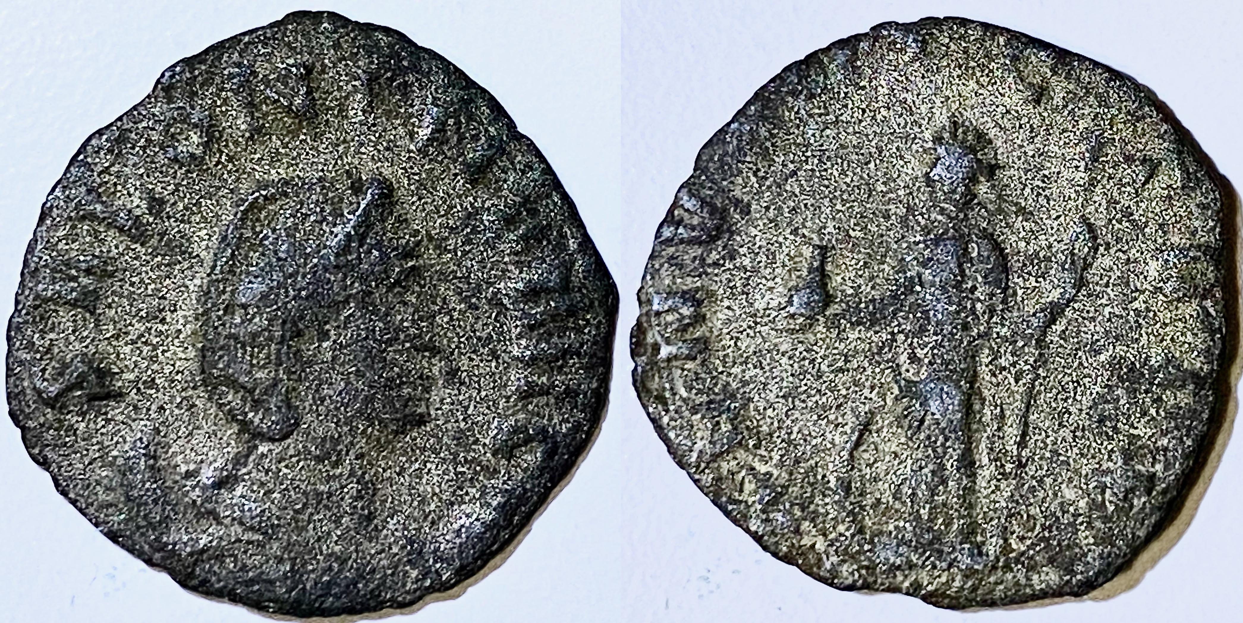 Toutefois, l’instabilité politique et le coût économique des constantes campagnes militaires ayant amené une importante dévaluation monétaire, les dénominations traditionnelles du IIe siècle disparaissent complètement et les antoniniani, d’abord frappé en billon (avec à peine 10% d’argent) au début du règne de Gallienus, ne sont plus à la fin de son règne que des pièces de cuivre argenturées (trempées dans l’argent ou plaquées). L’état de cette pièce (où le noyau de cuivre apparait sous l’argenture) semble indiquer une période tardive du règne de Gallienus (c. 267-68).