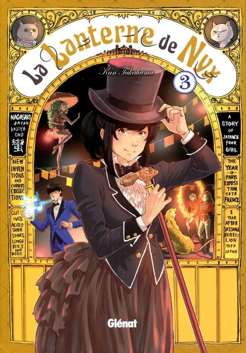 La lanterne de Nyx, vol. 3, par Kan Takahama. Grenoble: Éditions Glénat (Coll. Seinen Manga), septembre 2019. 244 pages, 14.5 x 21 cm, 10.75 €, ISBN 978-2-344-03372-2. Pour un lectorat adolescent (14+).