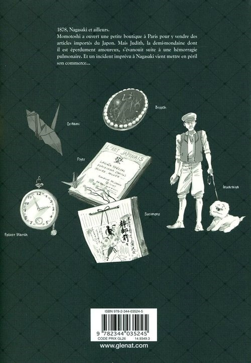 “1878, Nagasaki et ailleurs. Momotoshi a ouvert une petite boutique à Paris pour y vendre des articles importés du Japon. Mais Judith, la demi-mondaine dont il est éperdument amoureux, s’évanouit suite à une hémorragie pulmonaire. Et un incident imprévu à Nagasaki vient mettre en péril son commerce…”