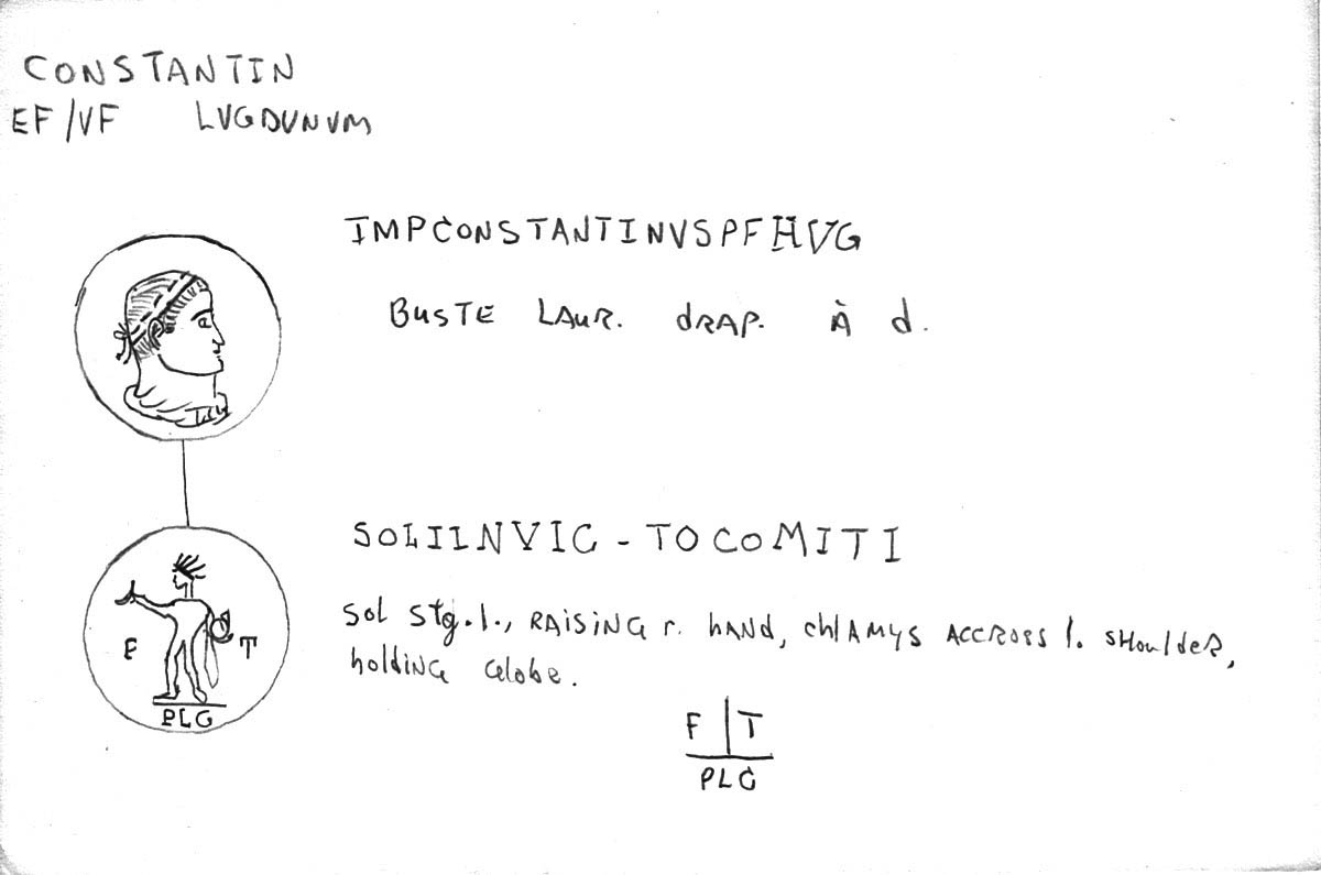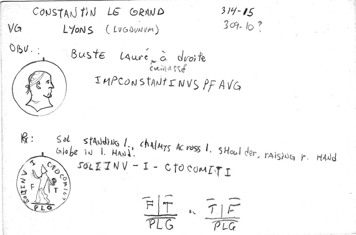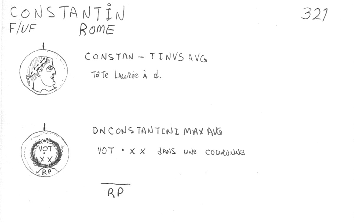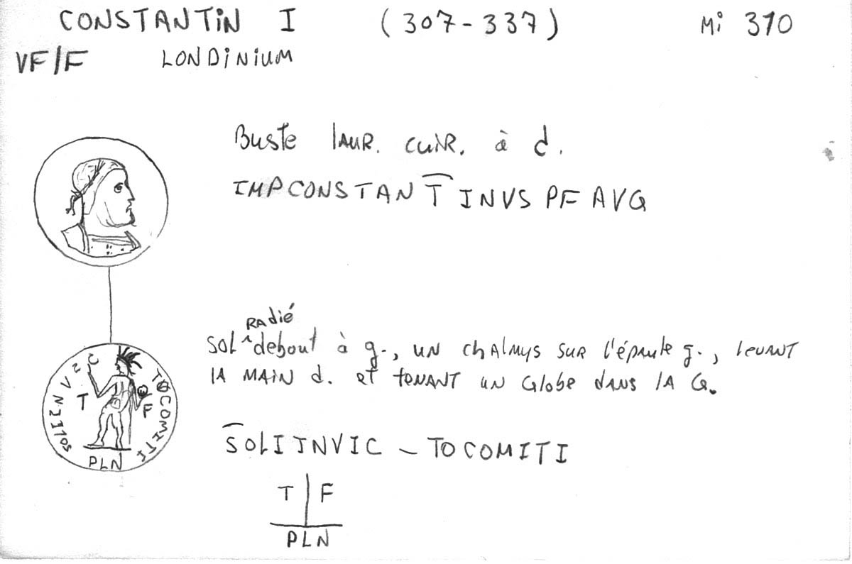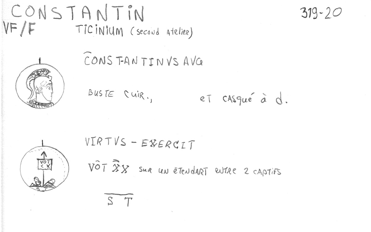 Sources: Wikipedia (Constantinus [FR/EN]), Google, FAC (Constantinus), ERIC (Constantinus); RIC v. 7: 60; Catawiki, CGBFR, NBD, Numista, WildWinds (text 1, image 1; text 2, image 2). Voir aussi ma fiche.