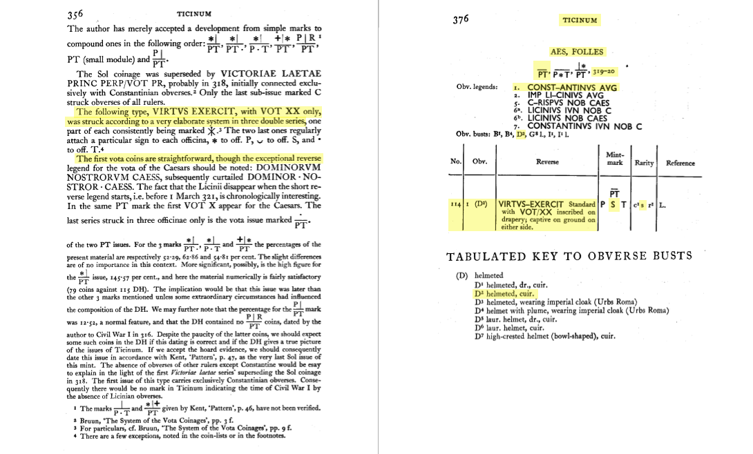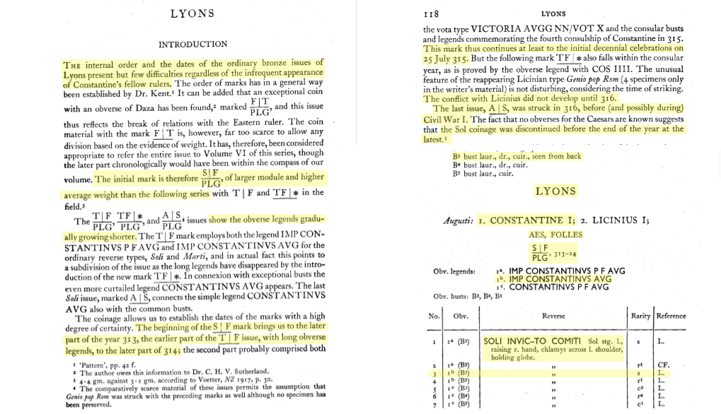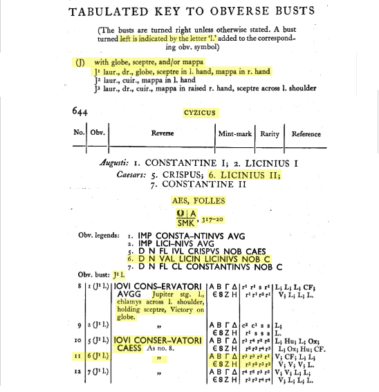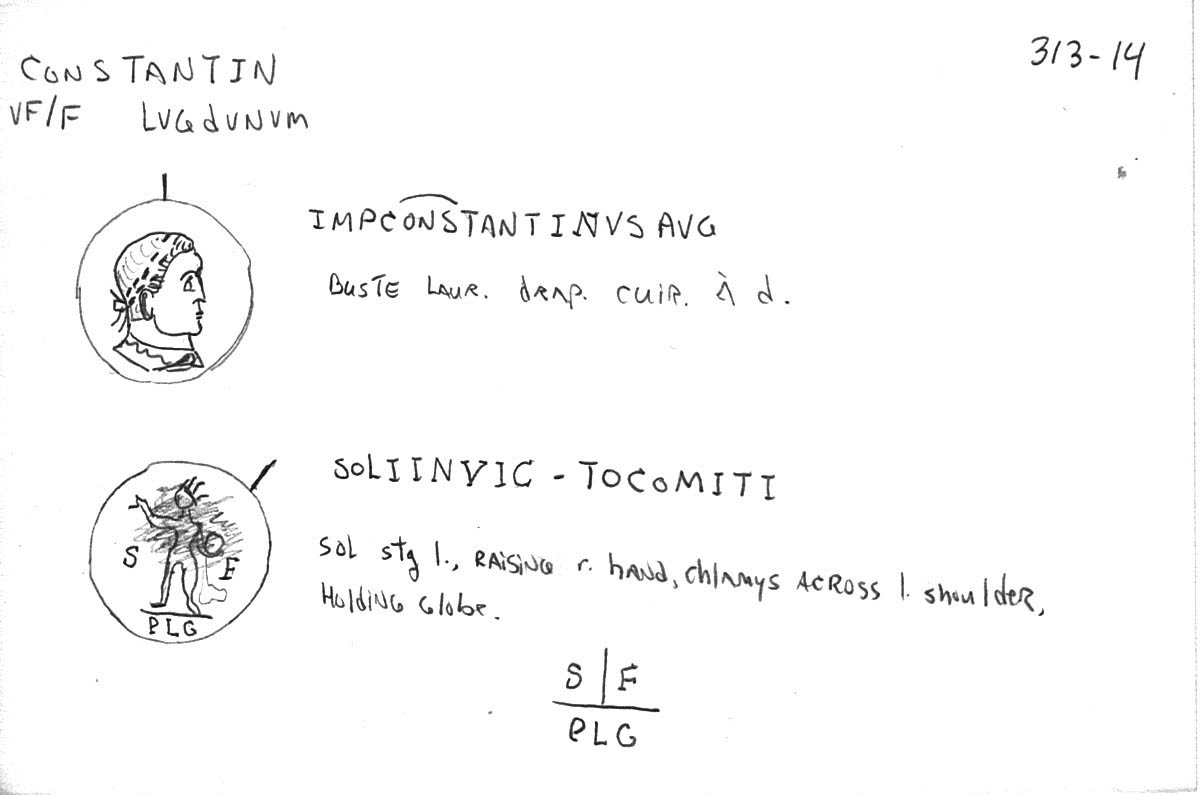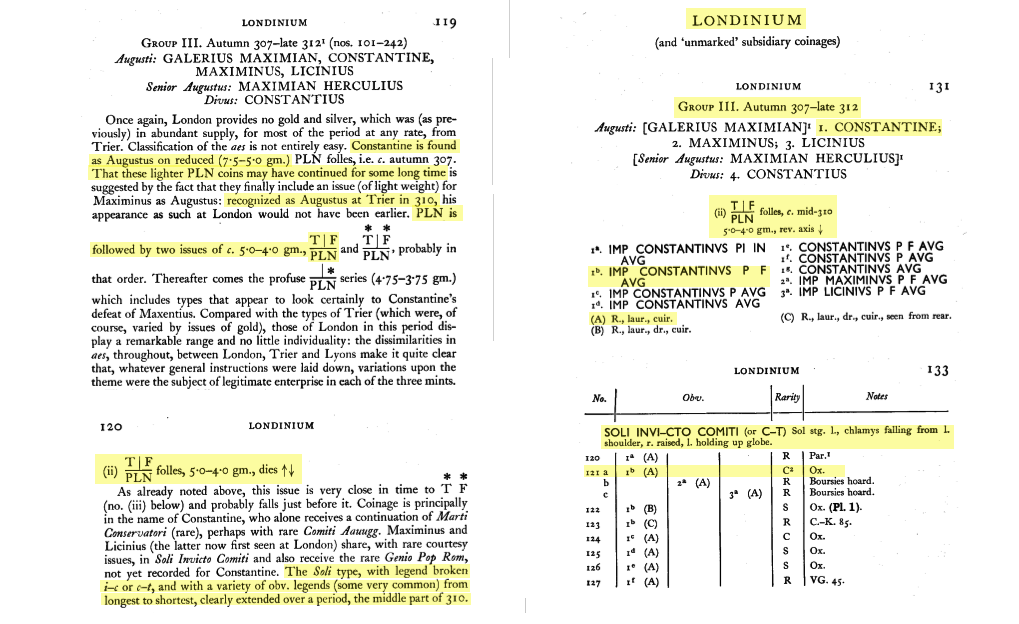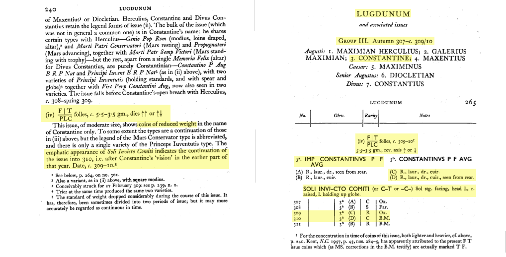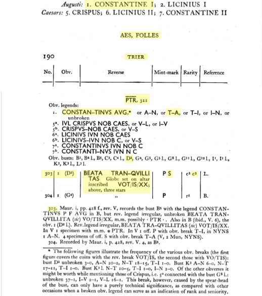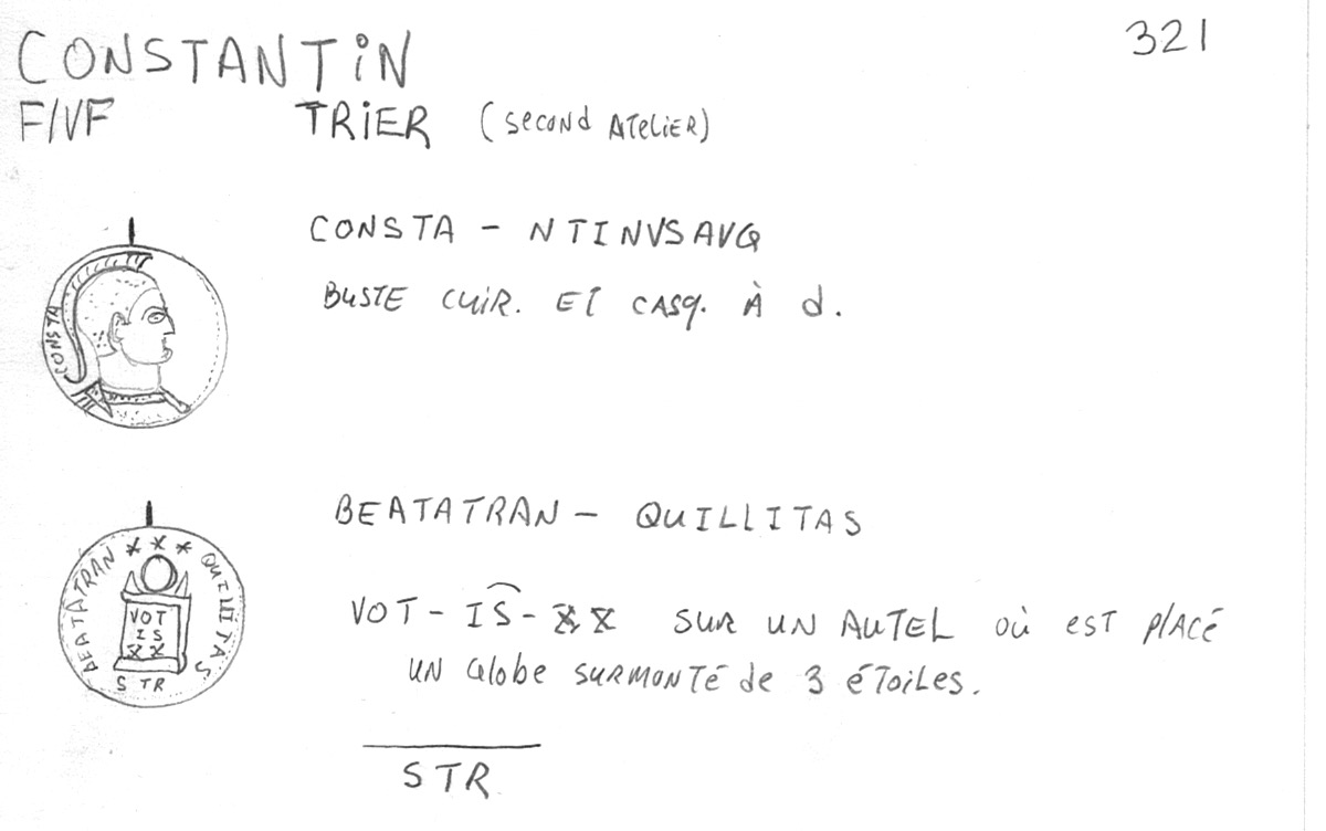 Sources: Wikipedia (Constantinus [FR/EN]), Google, FAC (Constantinus), ERIC (Constantinus); RIC v. 7: 60; Catawiki, CGBFR, NBD, Numista, WildWinds (text 1, image 1; text 2, image 2). Voir aussi ma fiche.
