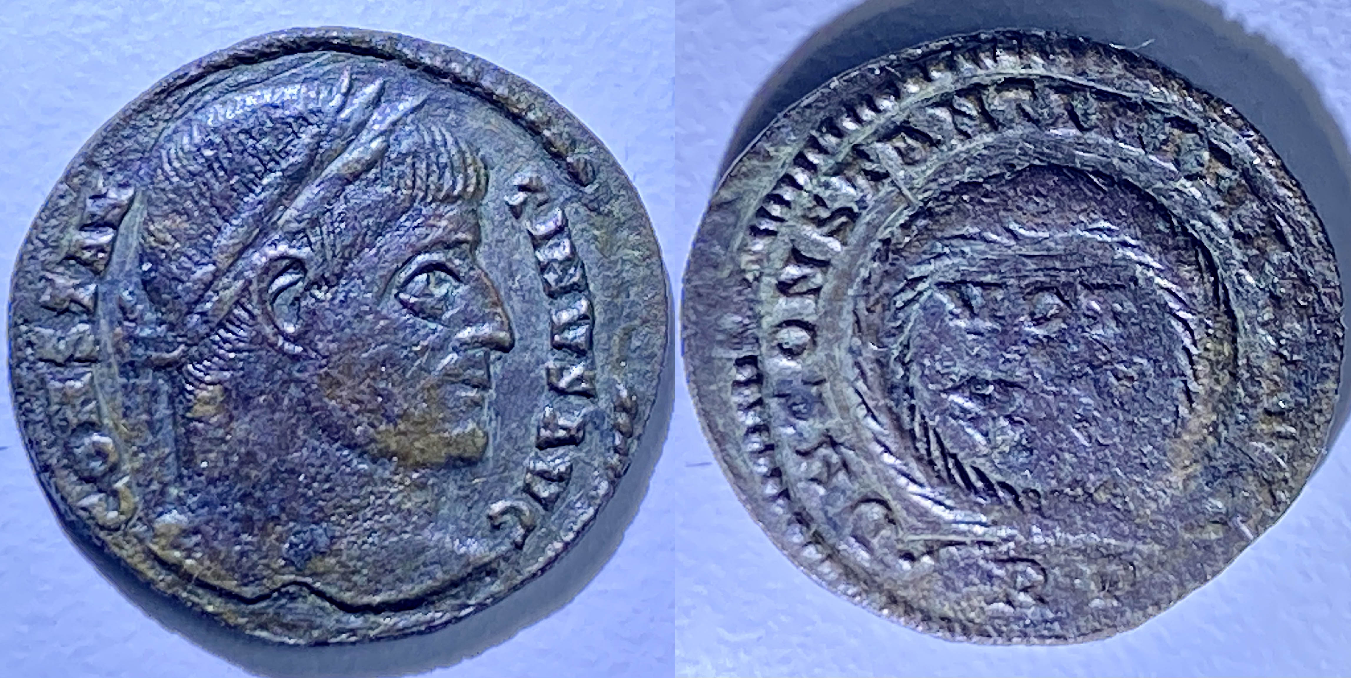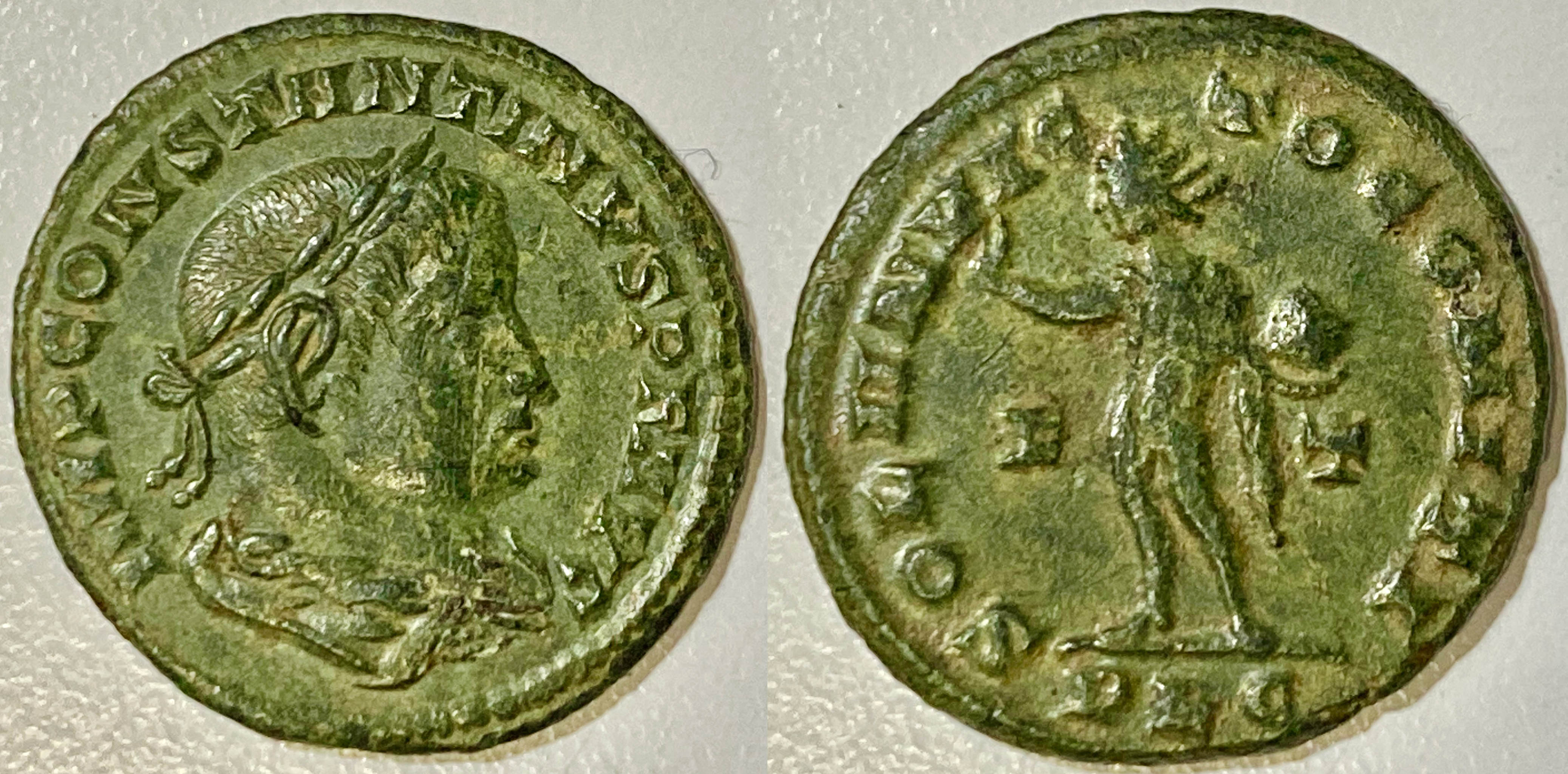 [ Translate ]On remarque que toutes les pièces de monnaie présentée ici ont été frappé en Orient, ce qui n’est pas surprenant puisque Constantinus y a maintenant établi sa capitale.