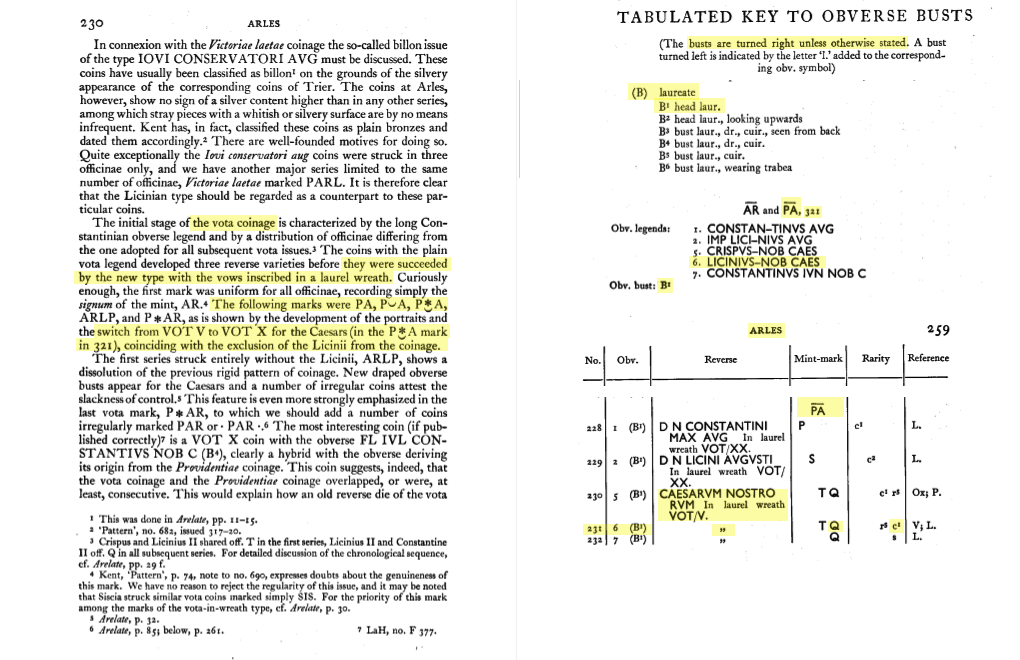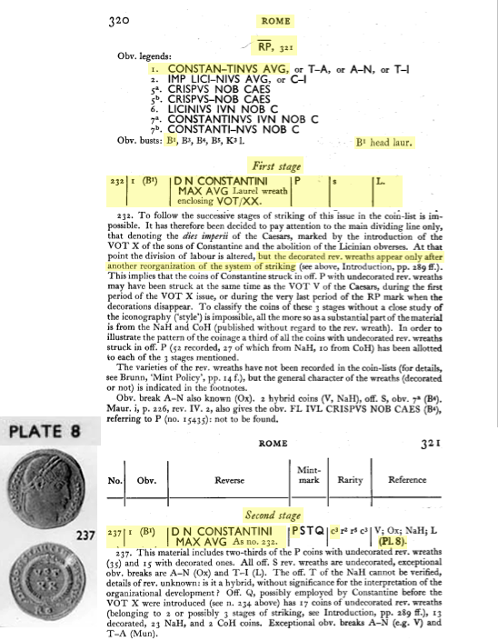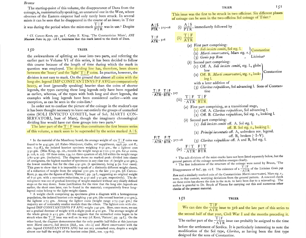 Sources: Wikipedia (Constantinus [FR/EN]), Google, FAC (Constantinus, camp gates), ERIC (Constantinus); RIC v. 7: 153; acsearch, CoinTalk, R5coins, TAC, vcoins, WildWinds (text, image). Voir aussi ma fiche.