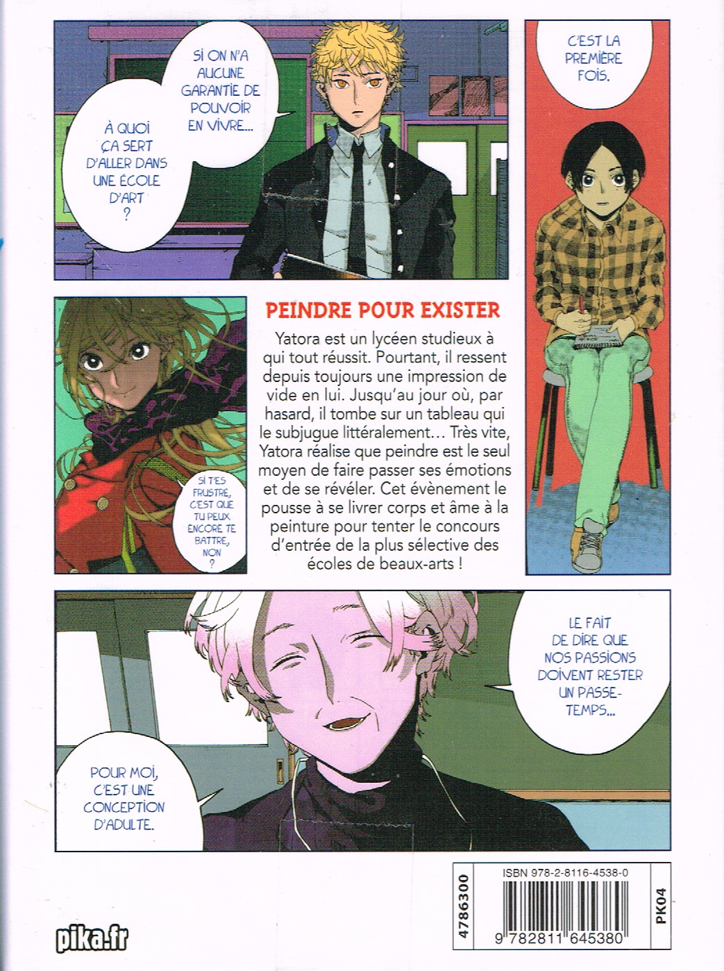 Blue period vol. 1, par Tsubasa Yamaguchi. Vanves: Pika (Coll. Seinen), janvier 2021. 228 pages, 13 x 18 cm, 7 € 50 / $C 16.99, ISBN 9782811645380, Pour lectorat adolescent (12+). stars-4-0