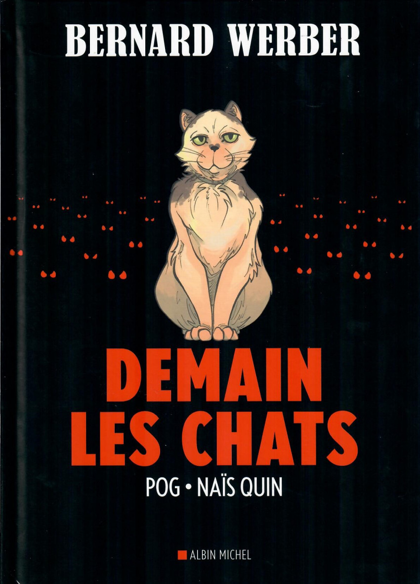 Demain les chats, par POG (adaptation & dialogues), Naïs Quin (dessin & couleur) et Bernard Werber (récit original). Paris: Albin Michel, avril 2021. 144 pages, 20 x 28 cm, 18,90 € / $C 29.95, ISBN 978-2-226-44930-6, Pour lectorat adolescent (14+). stars-3-5