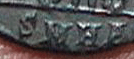 IMG_1254-1256La deuxième des pièces est un exemplaire tout à fait médiocre d’un follis réduit / nummus (VP [Very Poor], AE4, AE / BI [Bronze / Billon], 11 mm, 0.945 g, payé environ $6 ! le 1985/06/16; le flan est entièrement corrodé ce qui fait qu’il n’y a rien de lisible; die-axis: ?). Il me semble distinguer plusieurs lignes parallèle sur le revers ce qu’il me laisse croire qu’il s’agirait, comme la pièce précédente, d’un type de Gloria Exercitus avec deux soldats entourant un vexillum. Et comme toute ces pièces faisaient partie d’un même lot qui apparemment ne contenait que des pièces de Constans frappée à Trèves, j’aurais tendance à croire que c’est le cas aussi pour cette pièce…