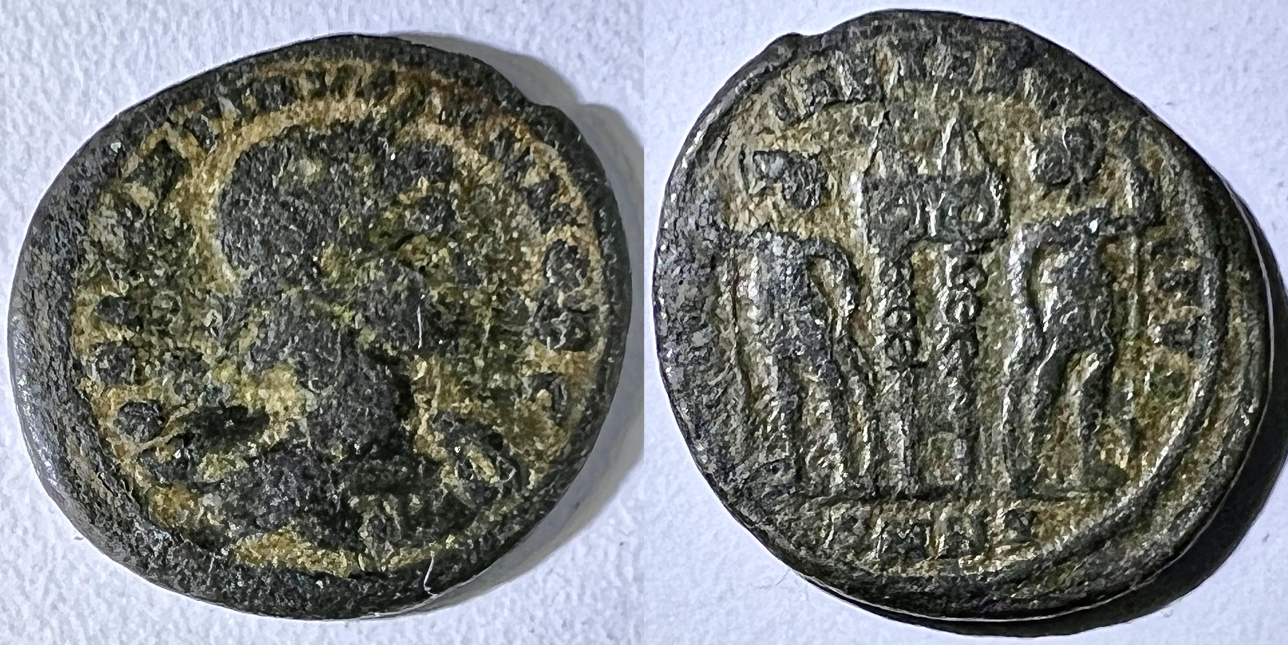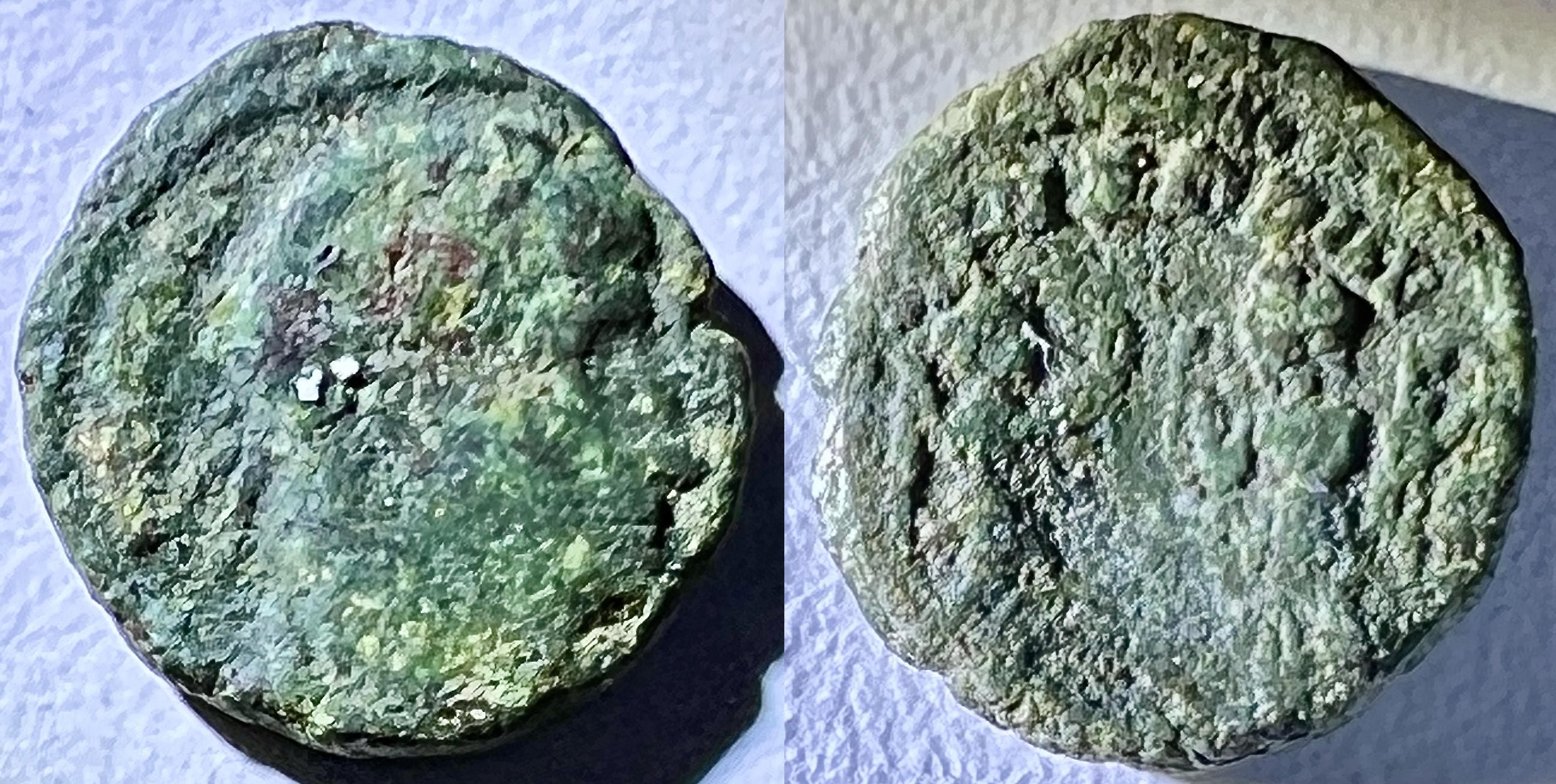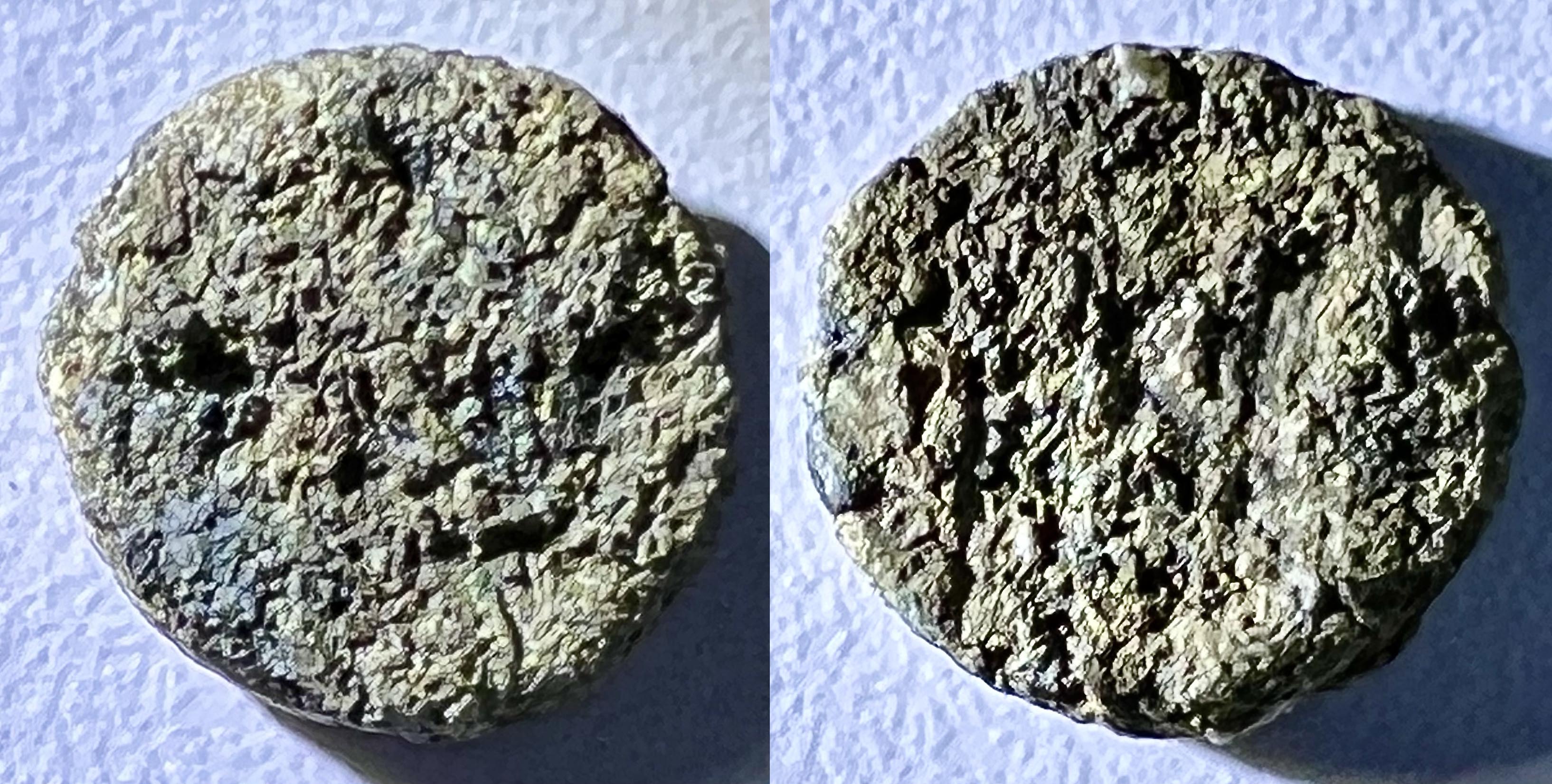 Il semble que les pièces du bas-empire me sont de plus en plus de difficiles à identifier avec exactitude car elles sont en moins bon état de conservation. Est-ce parce qu’elles ont circulé plus longtemps? Ou parce que la qualité de la frappe était moins bonne? Ou simplement parce que j’ai eu moins de chance avec l’acquisition de ces lots là? Je ne saurais dire…