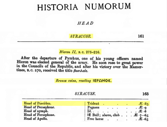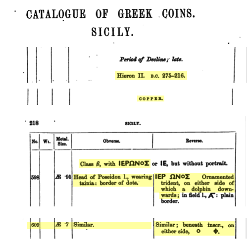Les sources (voir plus bas) s’entendent sur le fait que cette pièce a été frappé à Rhegium entre 270 et 203 AEC (quoique certain la date de 260-218 AEC).