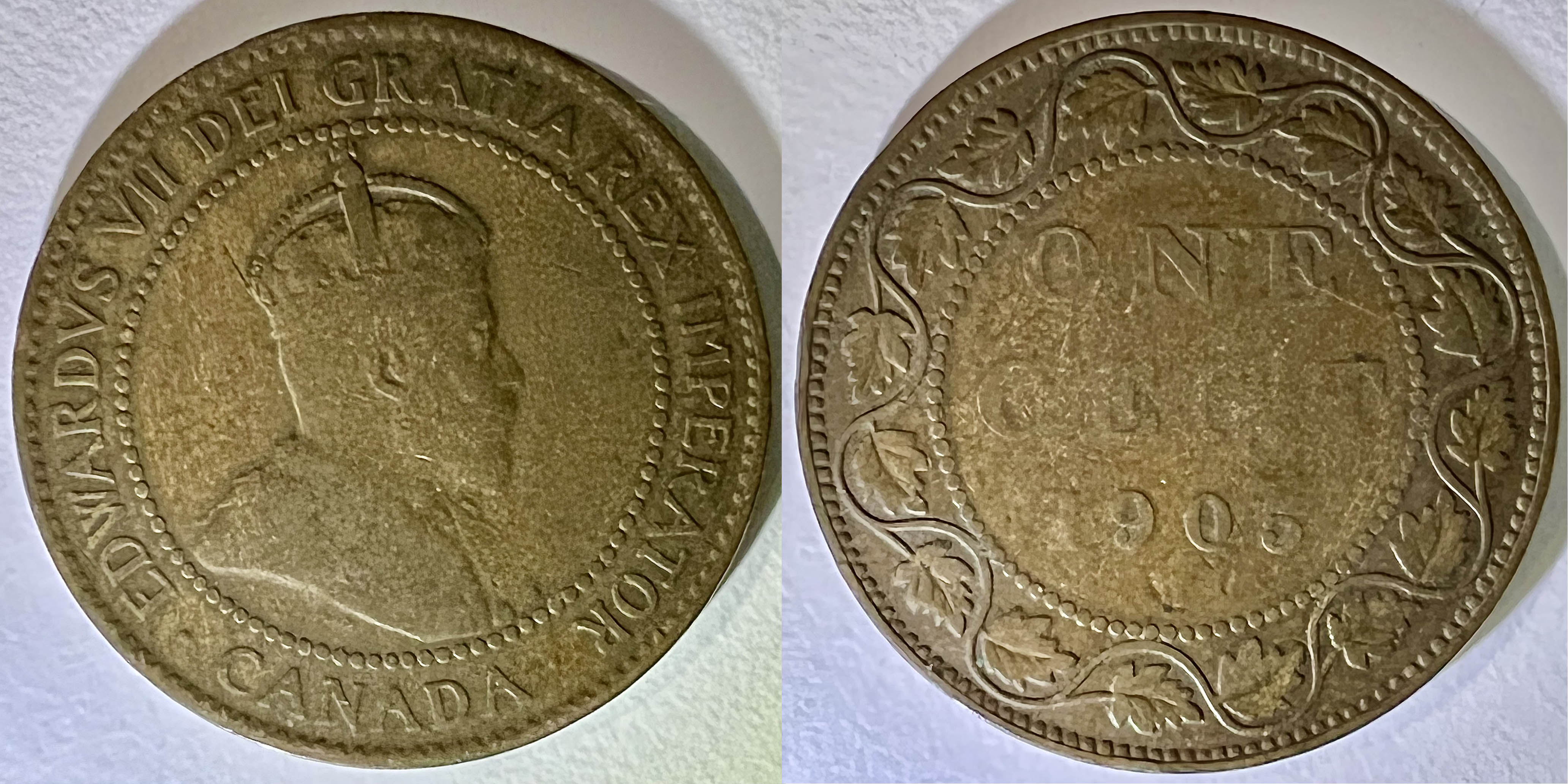 En janvier 1901, la reine Victoria décède et son fils Édouard VII lui succède. La pièce de un cent demeure la même mais l’avers est modifié (avec un dessin de G. W. DeSaulles) pour refléter le changement de monarque: il présente maintenant un buste d’Edouard VII, à droite, vêtu d’un manteau d’apparat et d’une couronne impériale, avec l’inscription latine EDWARDVS VII DEI GRATIA REX IMPERATOR – CANADA (“Edouard VII, par la grâce de dieu, roi et empereur – Canada”). Le revers reste inchangé. À partir de 1908, la frappe de monnaie sera finalement effectuée au Canada, avec la création de la Monnaie Royale Canadienne à Ottawa (mais les pièces ne comporte aucune marque de frappe pour les distinguer).