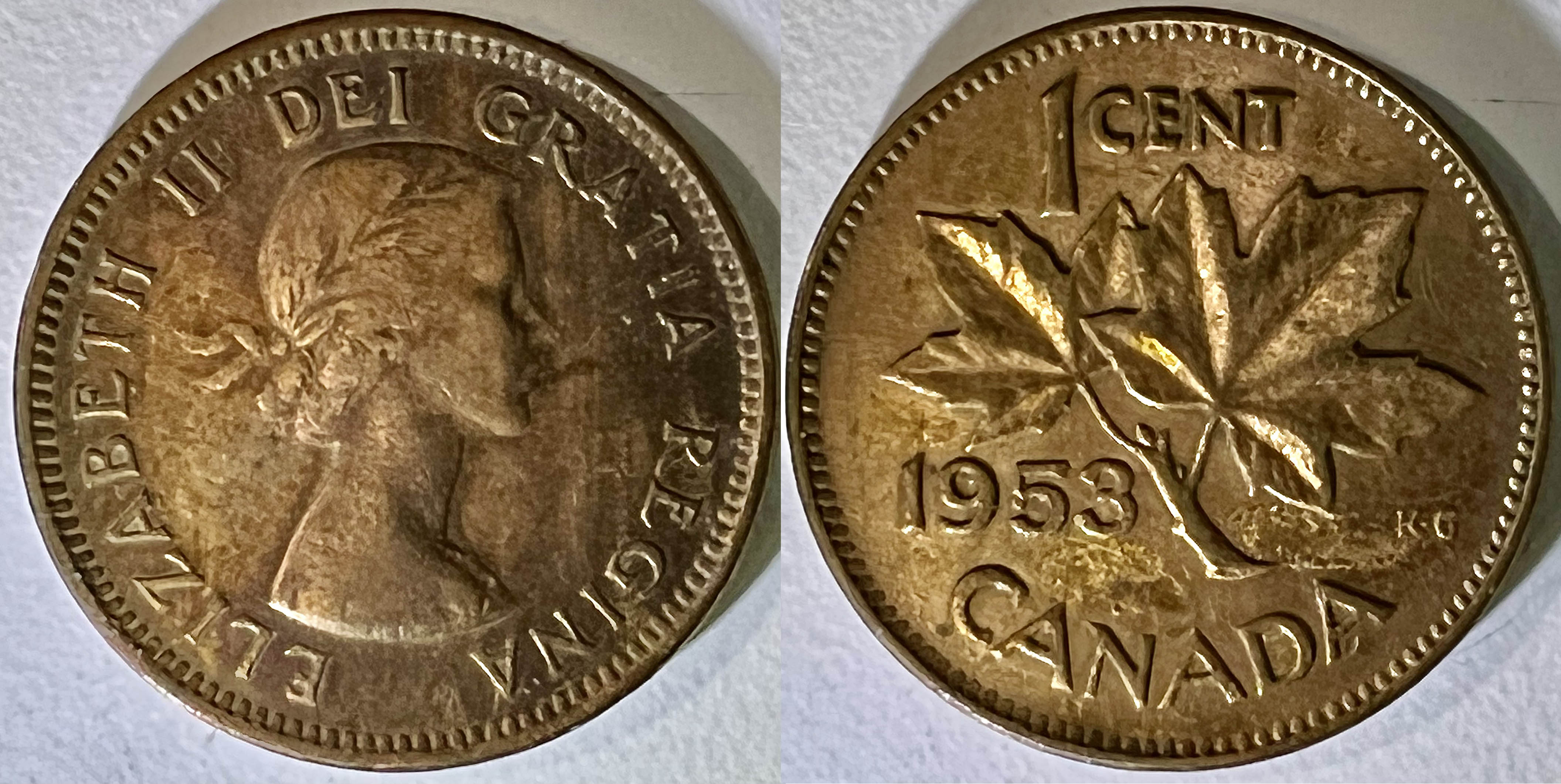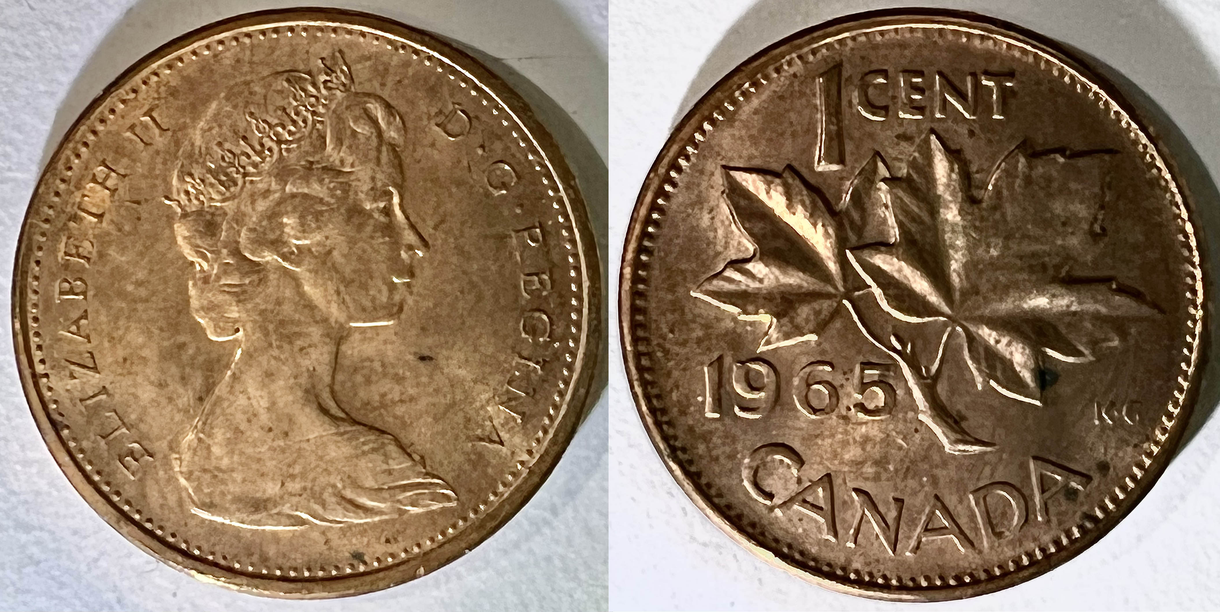 Pour ce qui est des pièces canadiennes modernes nous pourrions nous étendre sur le sujet pendant longtemps avec les pièces de un cent, de cinq cents, de dix cents, de vint-cinq cents, de cinquante cents et le dollars qui ont tous beaucoup varié de design et de portrait au cours des années. J’y reviendrais peut-être un jour mais pour cette fois je ne vais m’attarder que sur la pièce de un cent.