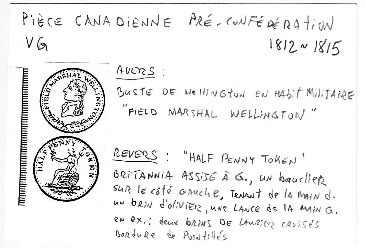 La provenance de ces jetons est incertaine (probablement l’Angleterre, possiblement le Bas Canada). Souvent contre-frappé sur des pièces antérieures, ils ne semblent pas avoir été frappé spécifiquement pour le Canada mais y ont été en circulation dès le début de leur émission, entre 1812 et 1815 (possiblement 1813).