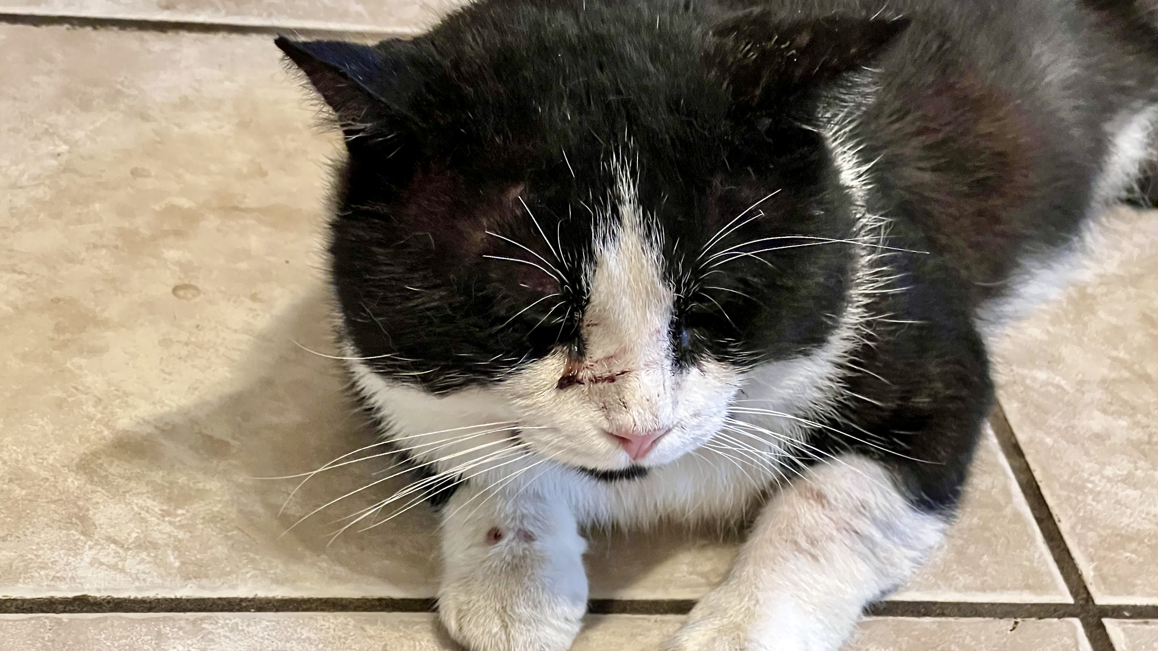 Un chat classic tabby (blotched) avec blanc et une chatte calico dans le parc. Il existe une variété étonnante de robes de chat… Ici ce sont sans doute des chats domestiques (et non errants) qui profitent d’un après-midi tranquille dans la verdure, probablement un mâle et une femelle.