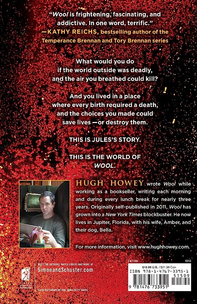 A community of about ten thousands humans lives in a self-sufficient closed environment, a silo made of over one hundred levels, protecting them from the toxic outside. Nobody knows for how long they have been there, nor what happened to make the surface of the Earth uninhabitable and toxic. In order to insure that they survive until the outside is liveable, this society is governed by a very strict set of rules called the “Pact”. If you ask too many questions or simply go crazy and desperately want to go outside, well, you are given a protective suit and shown the door. Despite the suit, most won’t survive the toxic environment more than a few meters… You are also given a piece of cloth (a wool) and asked to clean the sensor camera that monitors the outside. Hence the title of the novel (but it might also be a reference to the expression “pull the wool over someone’s eyes”, i.e. to deceive, which would make us wonder what kind of deception is in play…).