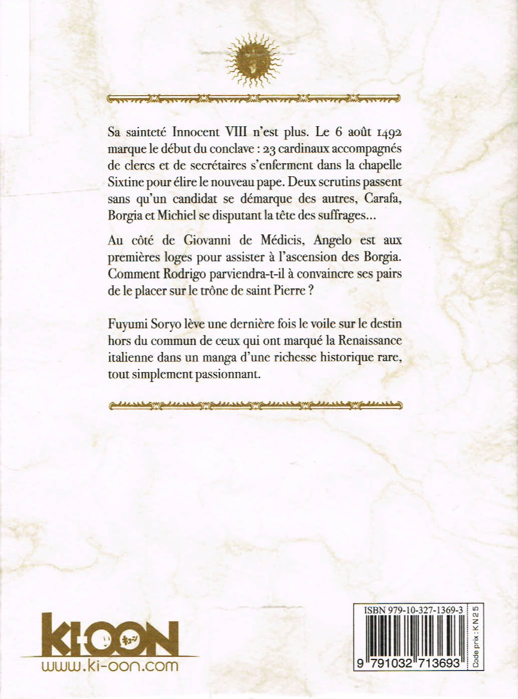 Fuyumi Soryo lève une dernière fois le voile sur le destin hors du commun de ceux qui ont marqué la Renaissance italienne dans un manga d’une richesse historique rare, tout simplement passionnant..”
