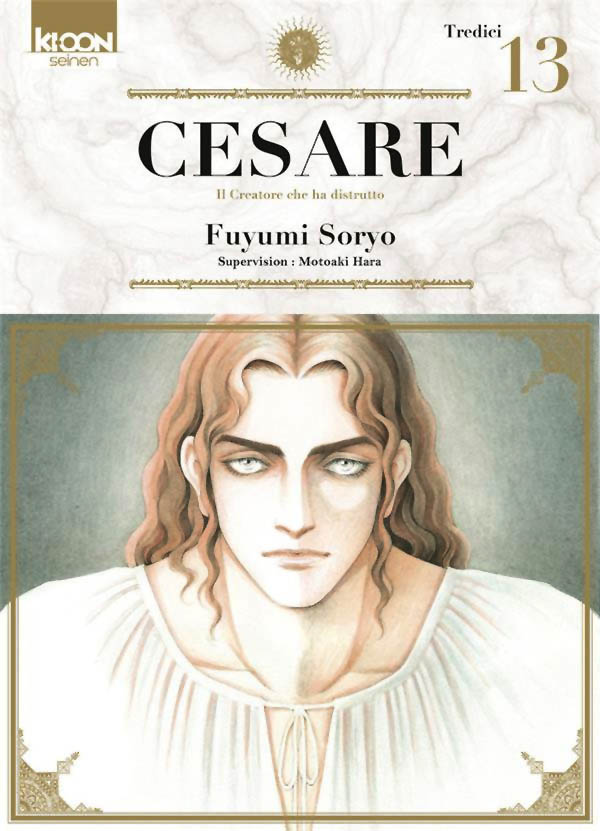 Cesare: Il creatore che ha distrutto, vol. 13 (Tredici), par Fuyumi Soryo (supervision: Motoaki Hara; traduction: Sébastien Ludmann). Paris, Éditions Ki-oon, Octobre 2023. 13 x 18 cm, 220 pg., 7,95 € / $14.95 Can. ISBN: 979-10-327-1369-3. Lecture dans le sens japonais (de droite à gauche) et recommandé pour jeunes adultes (14+).