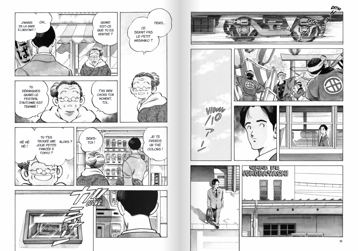 Ce volumineux manga nous offre quatre histoires (“Samurai non grata” [144 p.], “Les 25 heures du Mans” [56 p.], “Les 8%” [130 p.] et “Cent yens de solitude” [119 p.]) qui racontent les mésaventures d’un commerçant qui sert d’intermédiaire dans des affaires louches, de son ami ancien mercenaire qui est le gérant de son appartement parisien et d’une modèle vietnamienne qui croise leur chemin de temps en temps. On y retrouve beaucoup d’action mais la complexité du récit et la narration confuse rend la lecture plutôt pénible. Heureusement, il y a le superbe dessin de Taniguchi, dans un style clair et précis, qui sauve un peu la situation et rend la lecture du manga un peu plus agréable. À lire seulement pour les amateurs de Taniguchi…