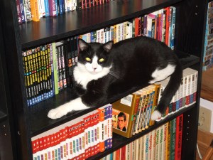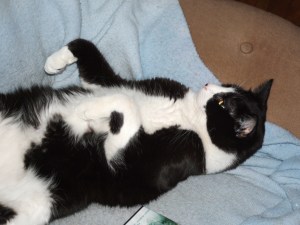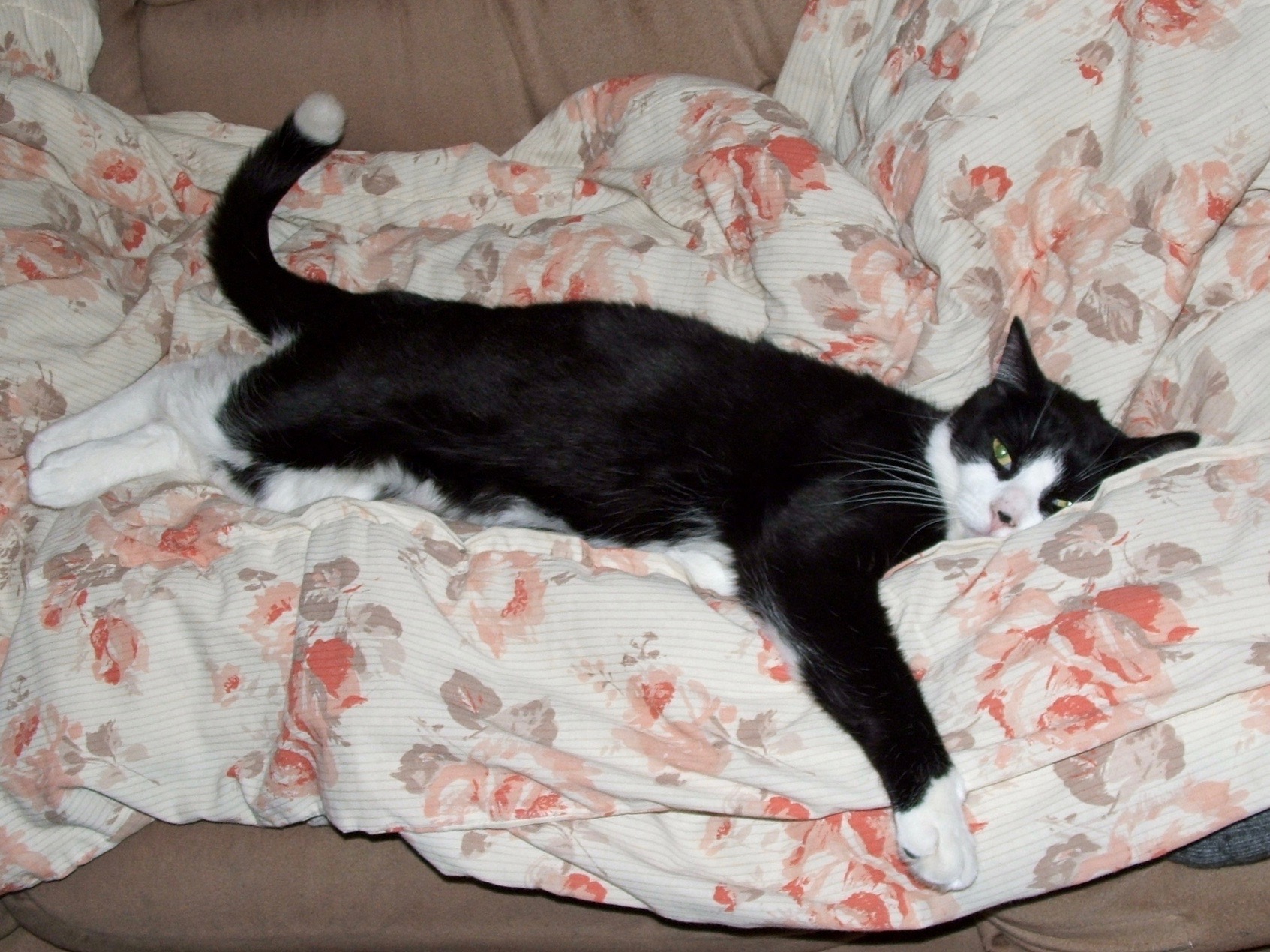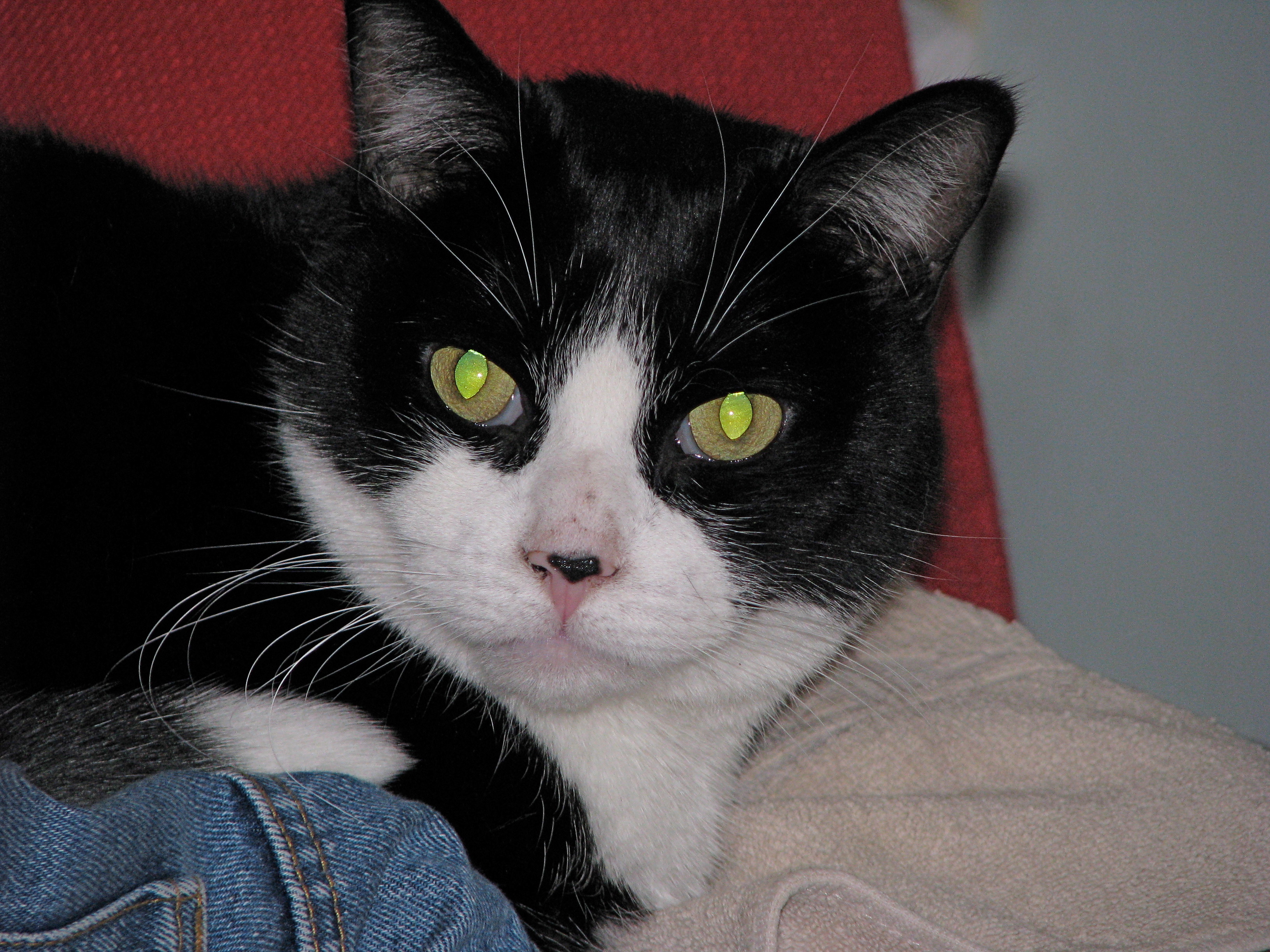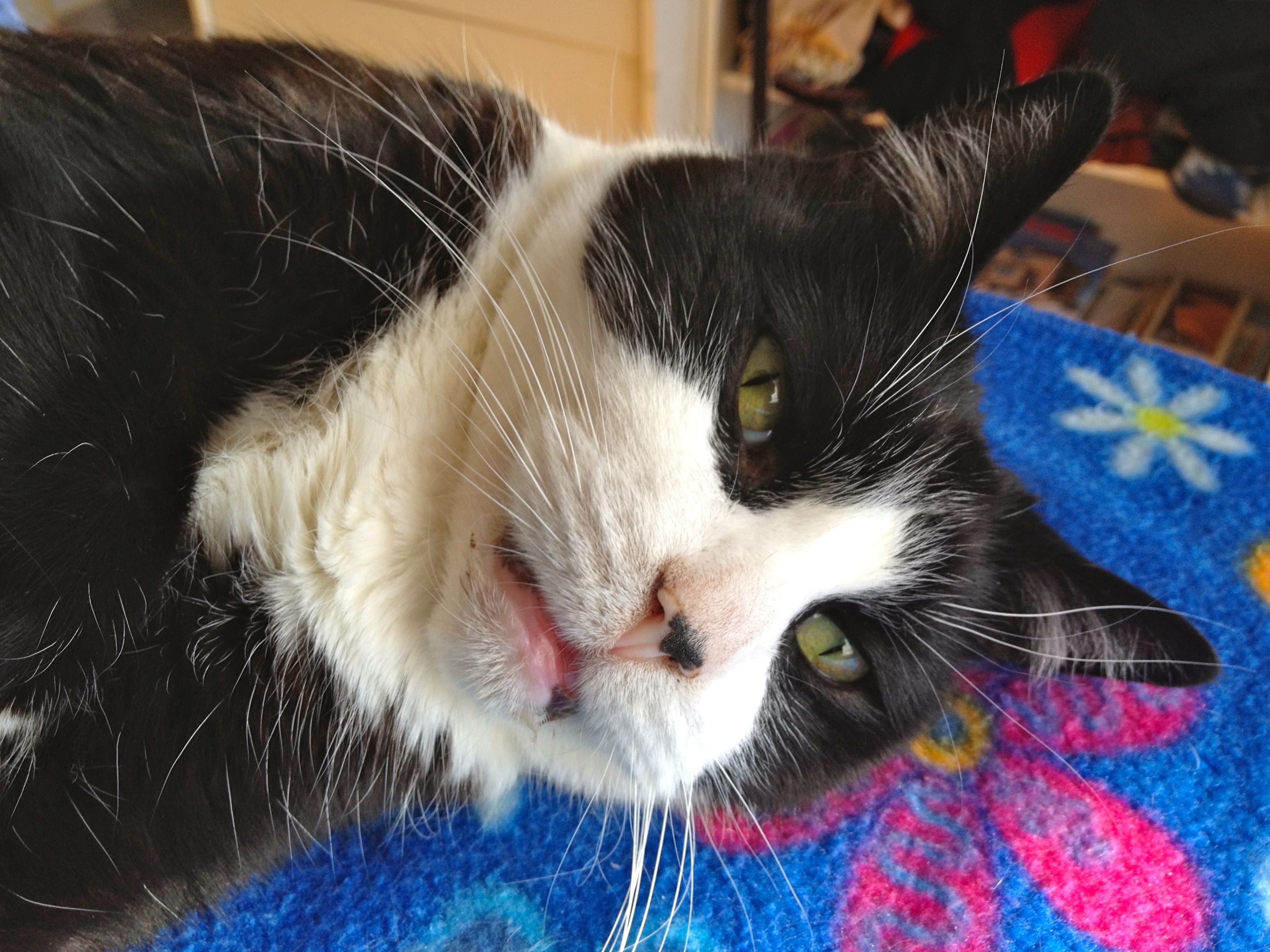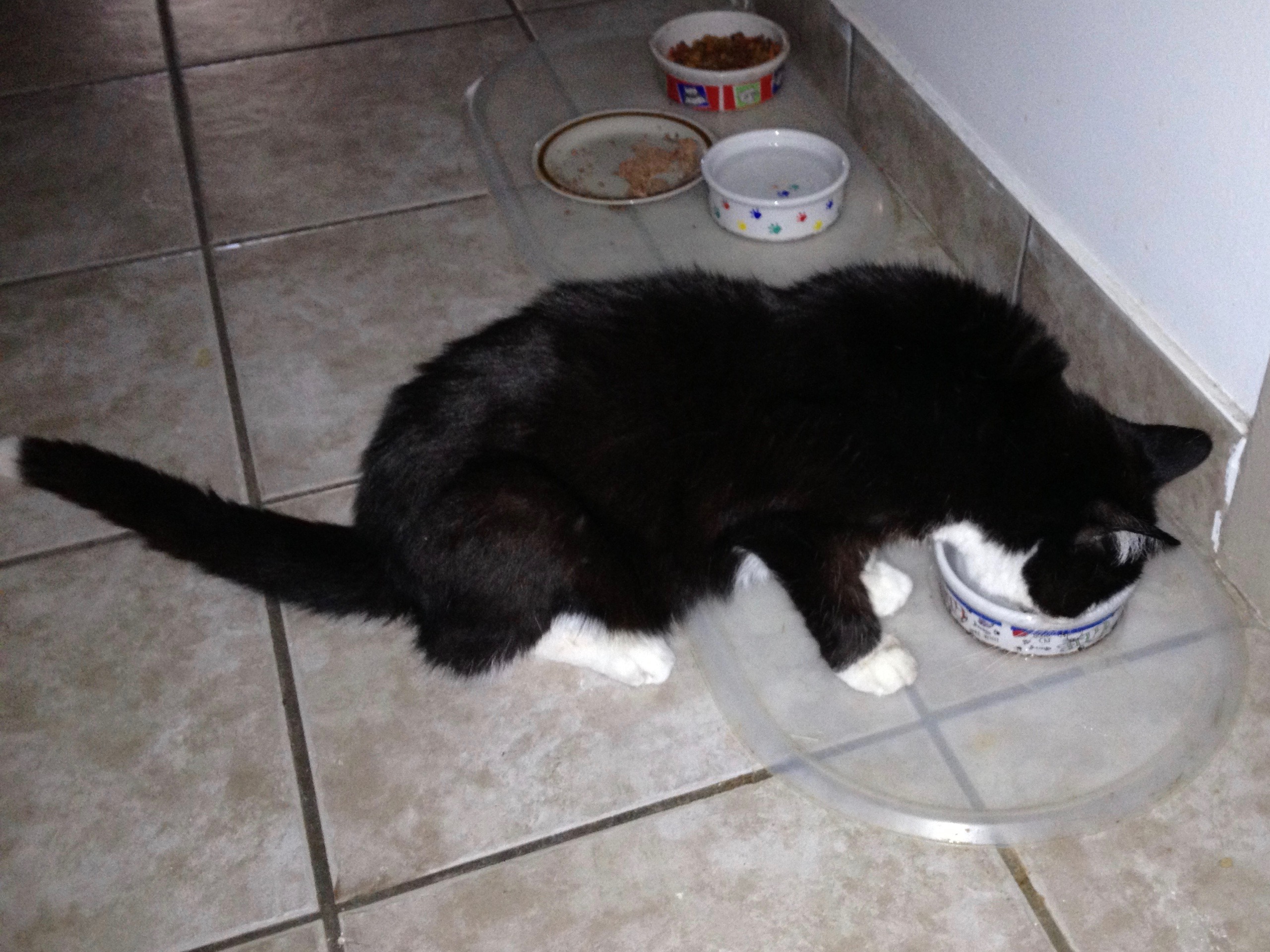 Malheureusement mon beau Caramel nous a quitté cette semaine. Il n’avait que dix ans. Subitement, il ne pouvait plus fermer sa mâchoire, ni manger et bavait beaucoup. Je l’ai amené d’urgence à la clinique pour découvrir qu’il avait une importante infection à une molaire supérieure droite. La dent s’est déplacée, empêchant ainsi la dent inférieure de prendre sa place et à la mâchoire de se fermer. Il n’avait donné jusqu’à maintenant aucune indication qu’il avait un problème (c’est bien connu les animaux ne s’expriment guère quand ils sont en douleur). Toutefois, à bien y penser, il avait changé de comportement ces derniers mois. Et cette photographie, prise il y a trois semaines (tristement la plus récente que j’ai prise de lui), montre qu’il bavait déjà un peu et j’avais remarqué qu’il avait parfois de la difficulté à mastiquer les céréales sèches. J’aurais dû m’en rendre compte plus tôt! Érangement, lorsque j’ai publié son dernier cliché, je trouvais que cela faisait photo de salon funéraire et j’ai eu un pressentiment… Aurais-je vraiment pu le sauver si j’avais agit plus vite? Toutefois, il avait également un souffle au coeur ce qui rendait l’anesthésie pour une chirurgie dentaire plus risquée et son rétablissement complet était loin d’être assuré (d’autant plus que la facture du vétérinaire s’élevait déjà à six-cent dollars!). Nous avons dû nous résoudre à simplement abréger ses souffrances… Je l’ai sortie de la ruelle et lui ai donné une vie de pacha. Nous aurons eut dix ans de bonheur ensemble, c’est déjà beau. Et maintenant il est allé rejoindre son ami Saya (et son frère Toffee) au paradis des chats…