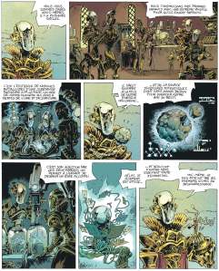 Ce numéro regroupe 29 courts récits et 8 articles (que je n’ai parcourue qu’en diagonale) sur le thème de l’immensité et des mystères des océans, sous le titre “Les Mondes du Silence”! Comme pour les numéros que j’ai commentés précédemment, si souvent les styles (extrêmement variés) des artistes n’étaient pas toujours de mon goût, j’ai toutefois trouvé quelques-un des courts récits plutôt intéressants — quoi que tous méritaient sans doute d’être lus. J’ai mis en caractères gras les titres les plus intéressants (narrativement et/ou graphiquement)…