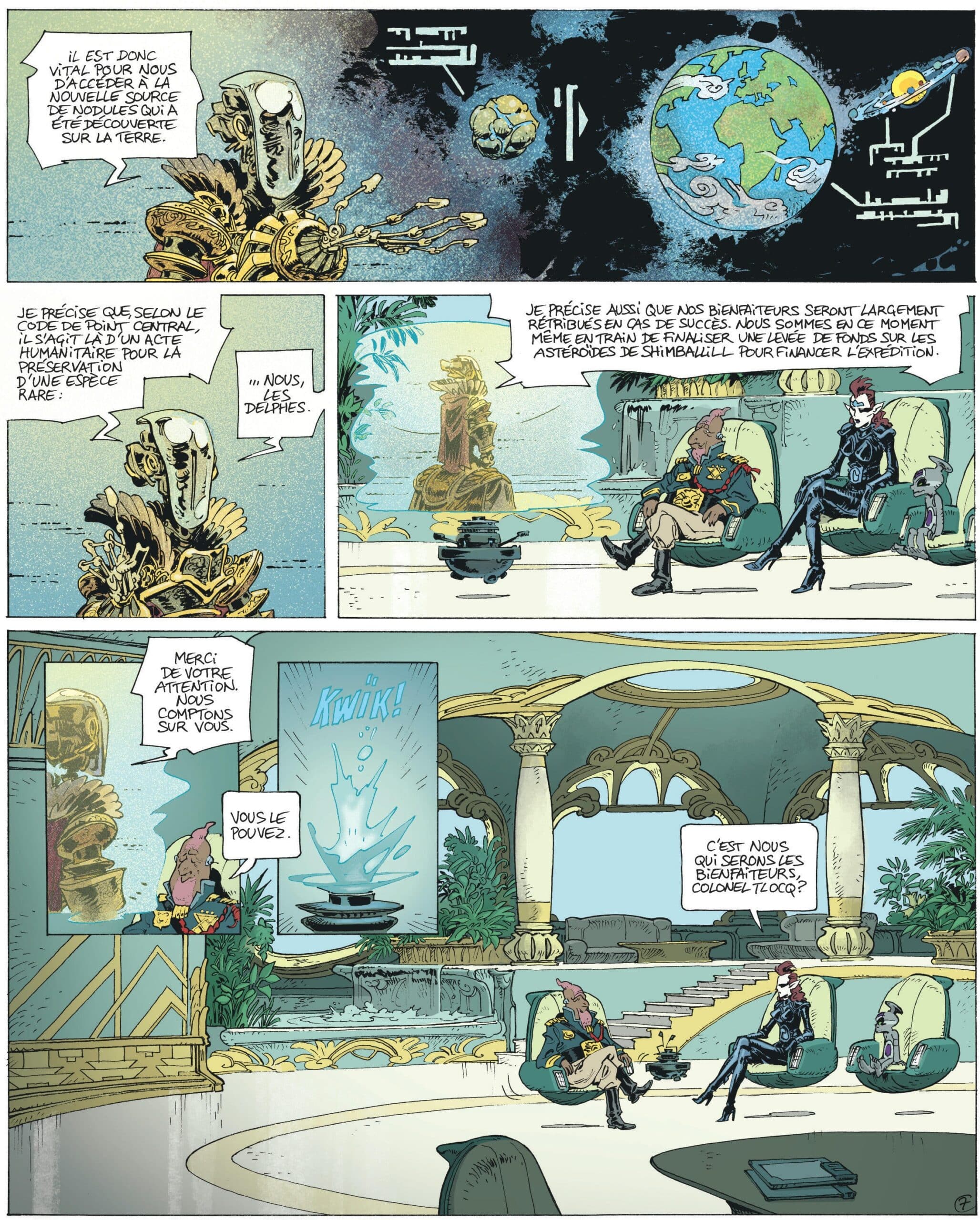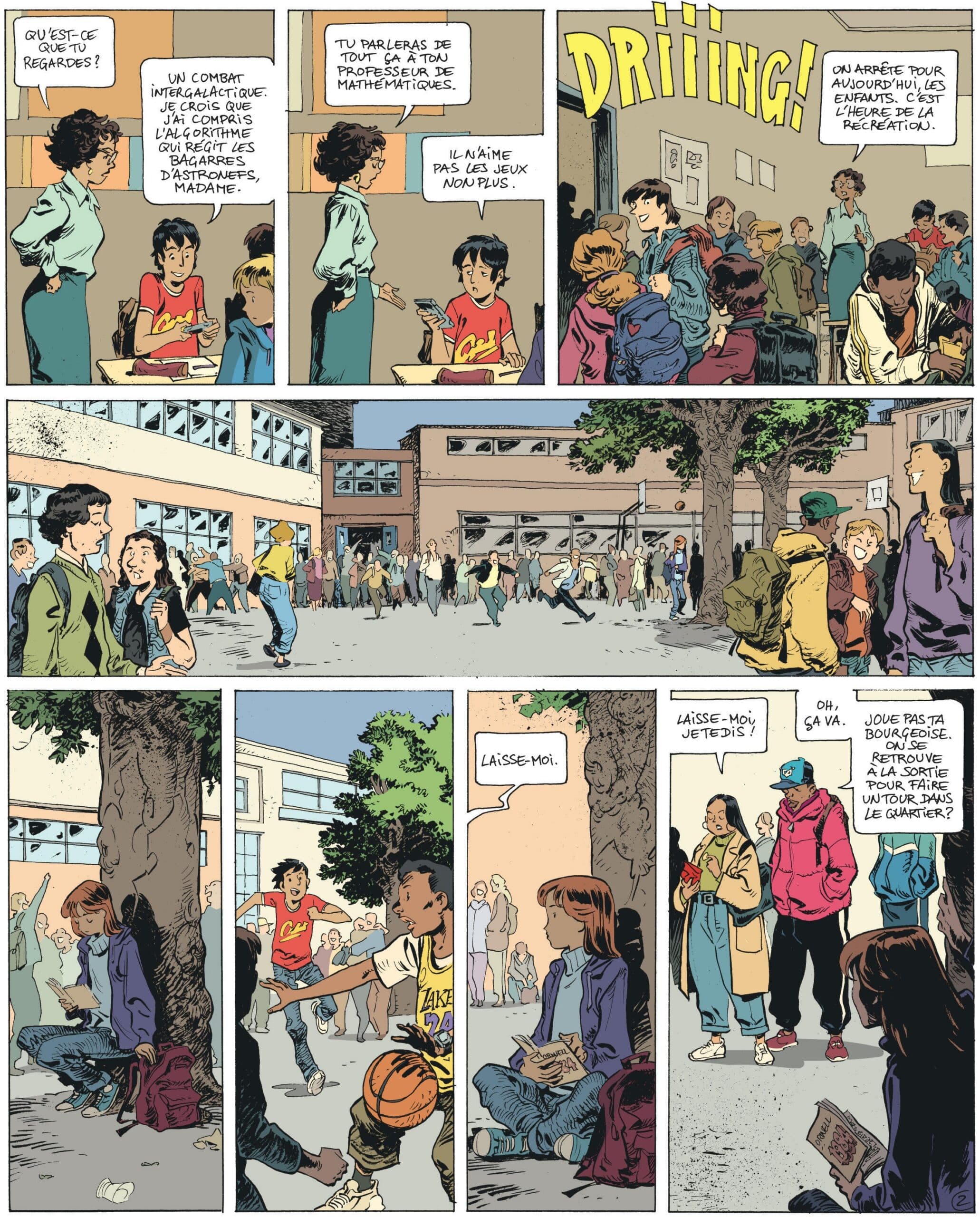 Ce numéro nous présente donc les récits suivants: “L’Océan qui chante” (Fabrizio Dori, 9 pgs, couleur), “Europa” (Fabien Grolleau & Abdel de Bruxelles, 11 pgs, coul.), “Au-delà de l’océan” (Valentin Ramon, 7 pgs, coul.), “Narcose” (Zéphir, 9 pgs, coul.), “La plage” (Simeon van den Ende & Pim Bos, 9 pgs, coul.), “Achane” (Edo Brenes, 9 pgs, coul.), “Pour l’humanité” (Joseph Falzon, 9 pgs, coul.), “Les lueurs de la nuit, l’abîme et le naufragé des étoiles” (Homero Rios & Leno Carvalho, 7 pgs, N&B), “Le plongeon” (Jean-Luc Cornette, 5 pgs, coul.), “La tribu de l’eau” (Marco Taddei & Samuele Canestrari, 7 pgs, duotone), “Thurs. 7:13 PM” (Thomas Bidault, 5 pgs, coul.), “Mocha – Pêche interdite” (Marc Caro & Cecyle Bay, 9 pgs, coul.), “Limon” (Juliette Hayer, 9 pgs, coul.), “Megasillon” (Arthur de Pins, 9 pgs, coul.), “Enterré” (Ryan Barry, 9 pgs, N&B), “Soupe primordiale” (Laurent Siefer, 11 pgs, coul.), “Le pêcheur ds abysses” (Miel Vandepitte, 7 pgs, coul.), “Abyssal transfert” (Richard Guérineau, 9 pgs, coul.), “Chasse sous-marine” (Gloria Ciapponi & Luca Conca, 7 pgs, coul.), “Deux frères” (Gamberoussette, 5 pgs, coul.), “Les astro-nautiques” (Alexandre Ristorcelli, 8 pgs, coul.), “Blind Taste” (Marc Caro, 3 pgs, N&B), “Maelström” (Brouette Hurlante, 5 pgs, coul.), “Intrication au naturel” (Grégory Panaccione & Giorgio Gualandris, 7 pgs, N&B), “Océanisation” (Étienne Appert, 11 pgs, coul.), “La grande marée” (Camille Moulin-Dupré, 9 pgs, N&B), “TOL” (Damien Cuvillier, 5 pgs, coul.), et “Caralisator” (Michaël Sanlaville, 7 pgs, coul.).