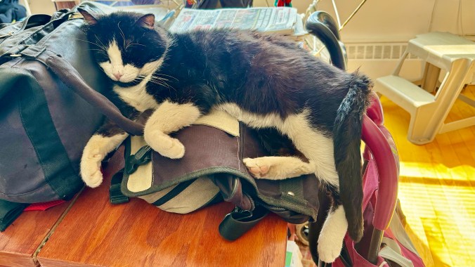 Cela fait déjà cinq ans que nous avons recueilli Félix (je le considère plus comme un locataire délinquant que comme mon chat). J’ignore l’âge qu’il avait lorsqu’il nous a demandé asile (probablement entre deux et cinq ans, ce qui lui donne près d’une dizaine d’années). Il se fait vieux, malade (sans doute sur sa dernière vie — on a souvent cru qu’il y resterait), n’a plus beaucoup d’énergie (et est plein de puces malgré tous les traitements que j’ai essayés). Cela lui arrivait souvent de disparaître pour plusieurs jours, mais cette fois-ci, après un peu plus de trois semaines, je me suis résolu à croire qu’il était allé mourir discrètement dans un recoin de la nature environnante. Puis, subitement le week-end dernier, il est réapparu, amaigri et affamé, toujours aussi léthargique. On a décidé, pour l’instant, de le garder sur le balcon et, si à l’hiver il est toujours là, nous lui offrirons à nouveau le garage… Il n’est pas très affectueux, un peu maussade, batailleur même s’il laisse généralement danser les souris, ne se gêne pas pour marquer son territoire, mais il est tout de même assez sympa. 仕方がない.