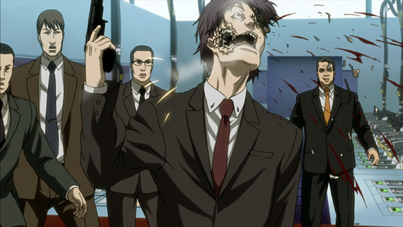 It’s episode 8 and the real story finally begins. The team is back in Japan after six years (Batou came back a few days earlier but got entangled in a bank robbery). There are three post-humans that have been identified in Japan. One is an ex-boxer who seems to have a grudge against corrupt politicians. He kills the Prime Minister’s father-in-law and then goes after Teito himself but stops short of killing him (maybe he felt that he was a good man?). The next post-humans to be identified is a teenager that wrote a program creating mob justice. As they are investigating his story, Togusa get infected by some of his code and disappears! Will he becomes a post-human too? To be continued… in the second season (another twelve episodes, directed this time by Shinji Aramaki, but no release date has been announced yet).