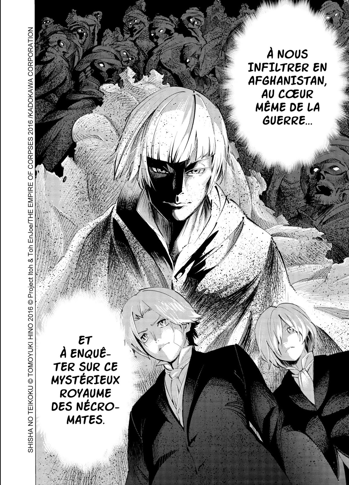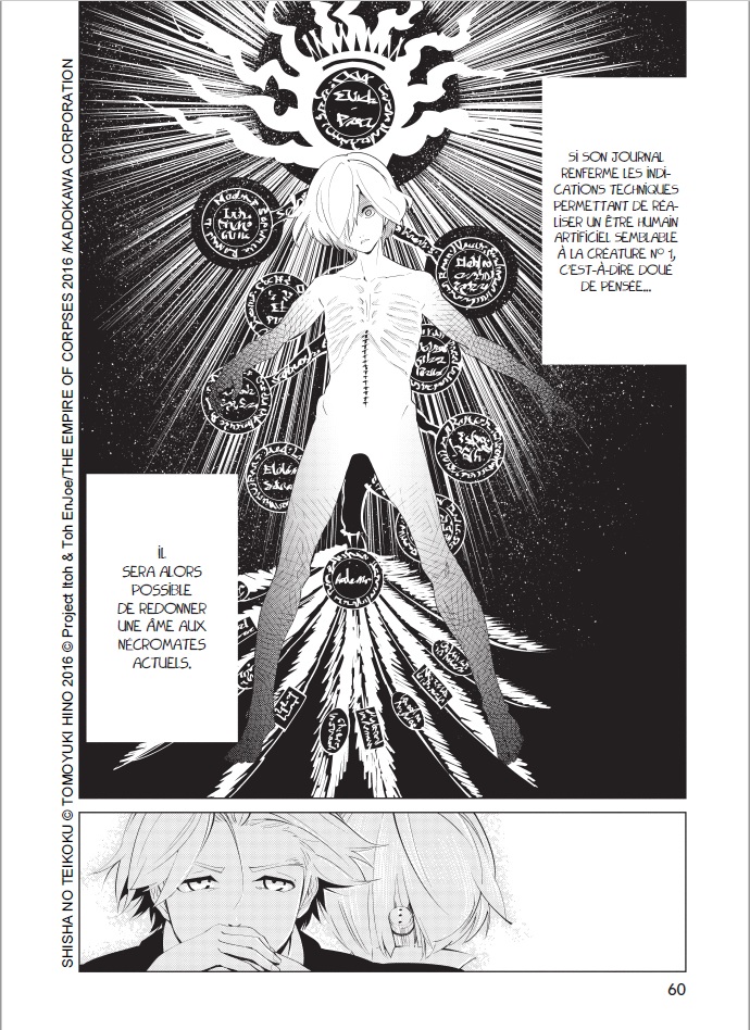 The empire of corpses, vol. 1 par Project Itoh & Toh EnJoe (Scénario) and Tomoyuki Hino (Dessin). Vanves: Pika Édition (Coll. Pika Seinen), novembre 2018. 160 p., 13 x 18 cm, 7,50 € / C$ 12.95. ISBN 978-2-8116-3905-1. Pour lectorat adolescent (12+).
